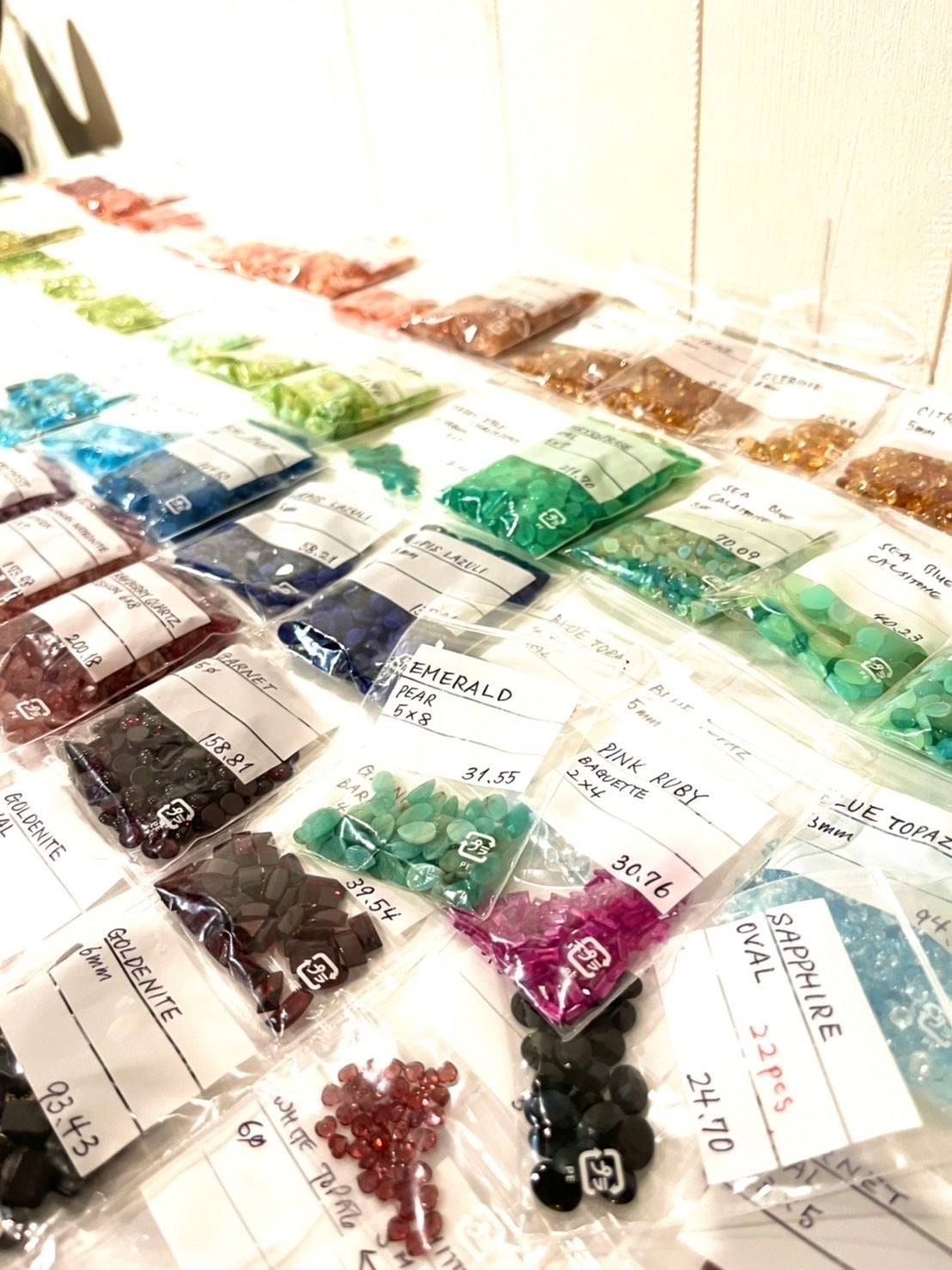 このように、ルースケースに入っている宝石たちで、多岐にわたるジュエリーが作成可能ですので是非作成してみて下さい!