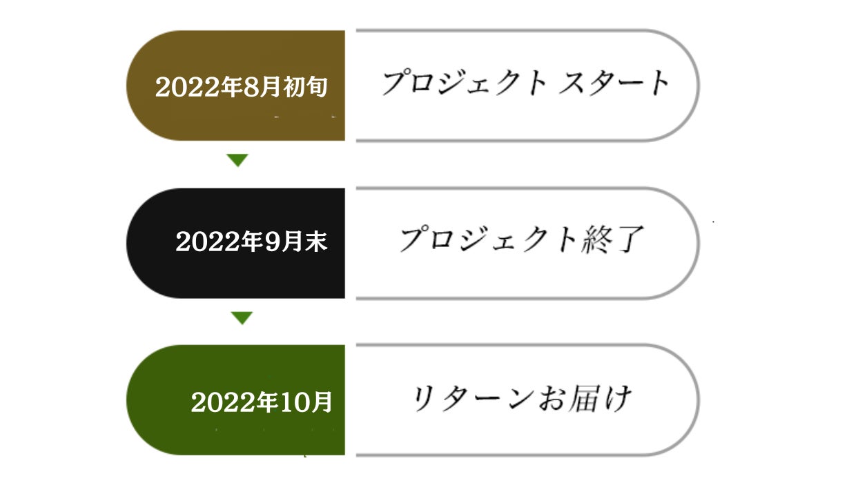 8月 プロジェクトスタート 9月末 プロジェクト終了 10月 リターンお届け