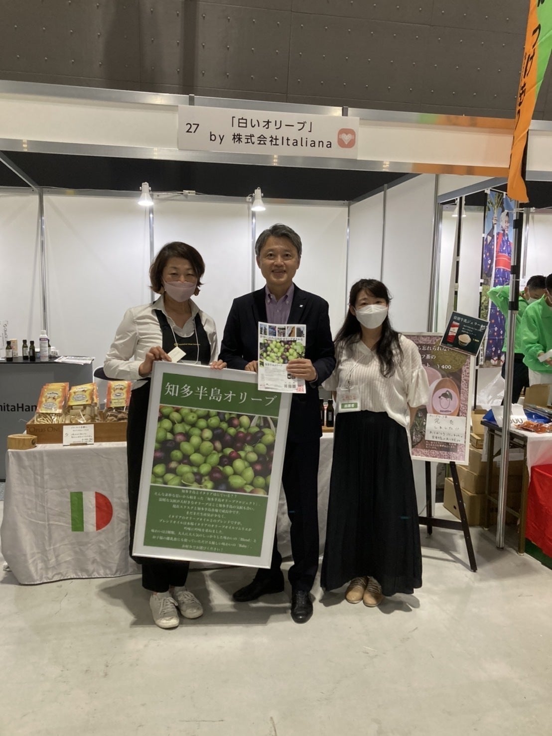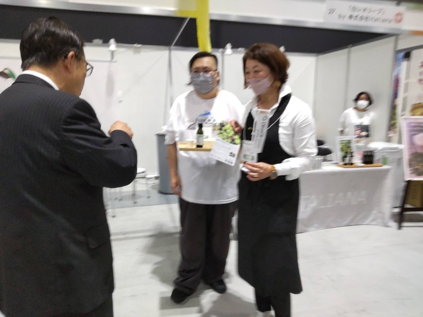 行政のさまざまな分野の方々が会場を訪れ「知多半島オリーブ」ブースにも、