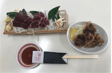メニューは鯨の刺身・ステーキ・唐揚げなど。
