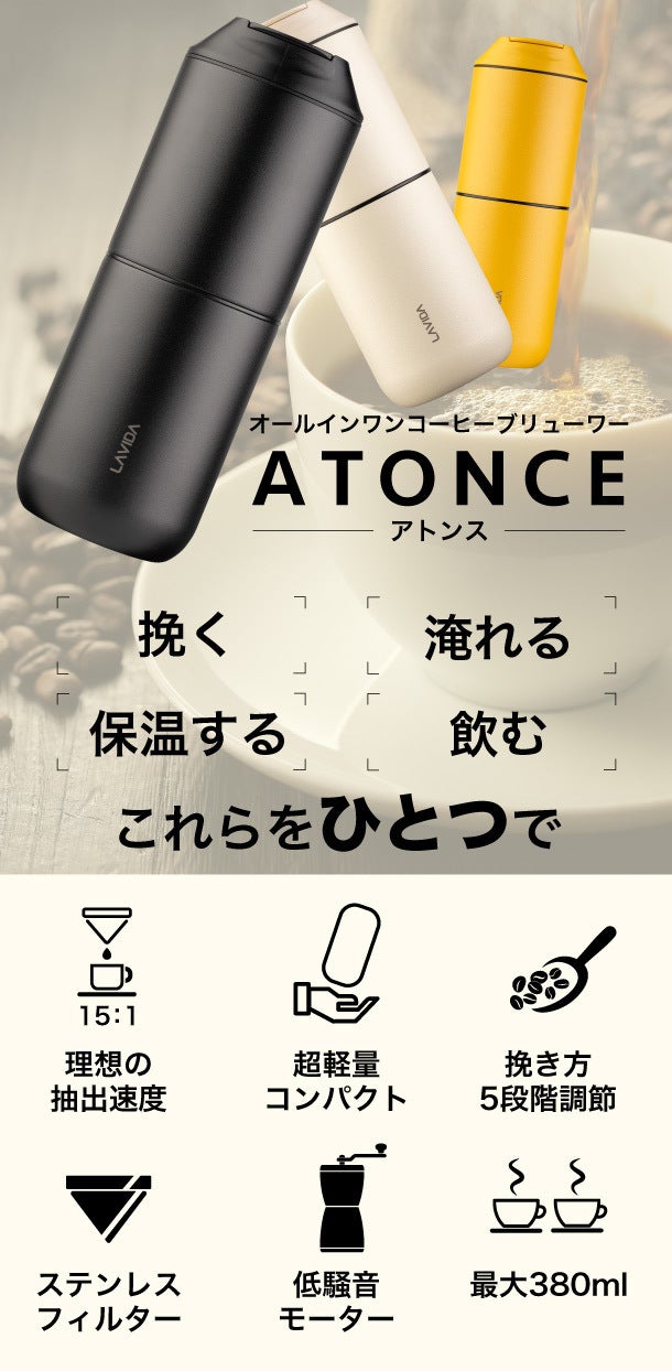 ATONCEは、ボタンを押すだけで新鮮なコーヒーを提供し、昼も夜も活力を与えてくれる優れたオールインワン・コーヒーブリューイングシステムです。いつでも、どこでも、5分以内に、新鮮な香りとお気に入りの味を楽しむことができます。