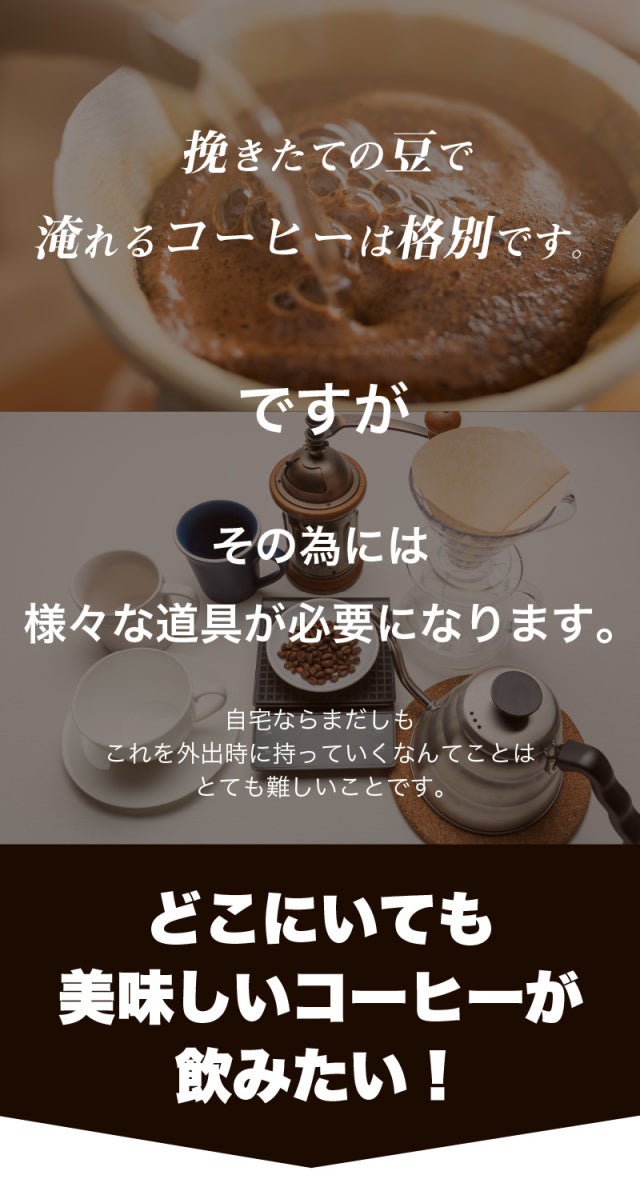 コーヒーを淹れる場合は熱いお湯が必要かと思いますが、出先で使用するとなるとお湯はどこかで調達するようになりますか? 保温性能がある容器だとしてもコーヒーを淹れることのできる温度で保温できる時間はどの程度でしょうか? お湯と入れたコーヒーを保温しておく容器は同じところになりますか?