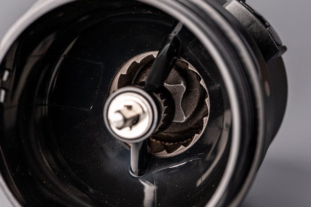 ATONCEの臼は掃除が簡単で手軽にできる構造になっています。付属の清掃用ブラシを使用して、豆挽きレベル調整レバーを最も粗いR5にセット、臼を清掃してください。 (※水洗いは避けてください。)