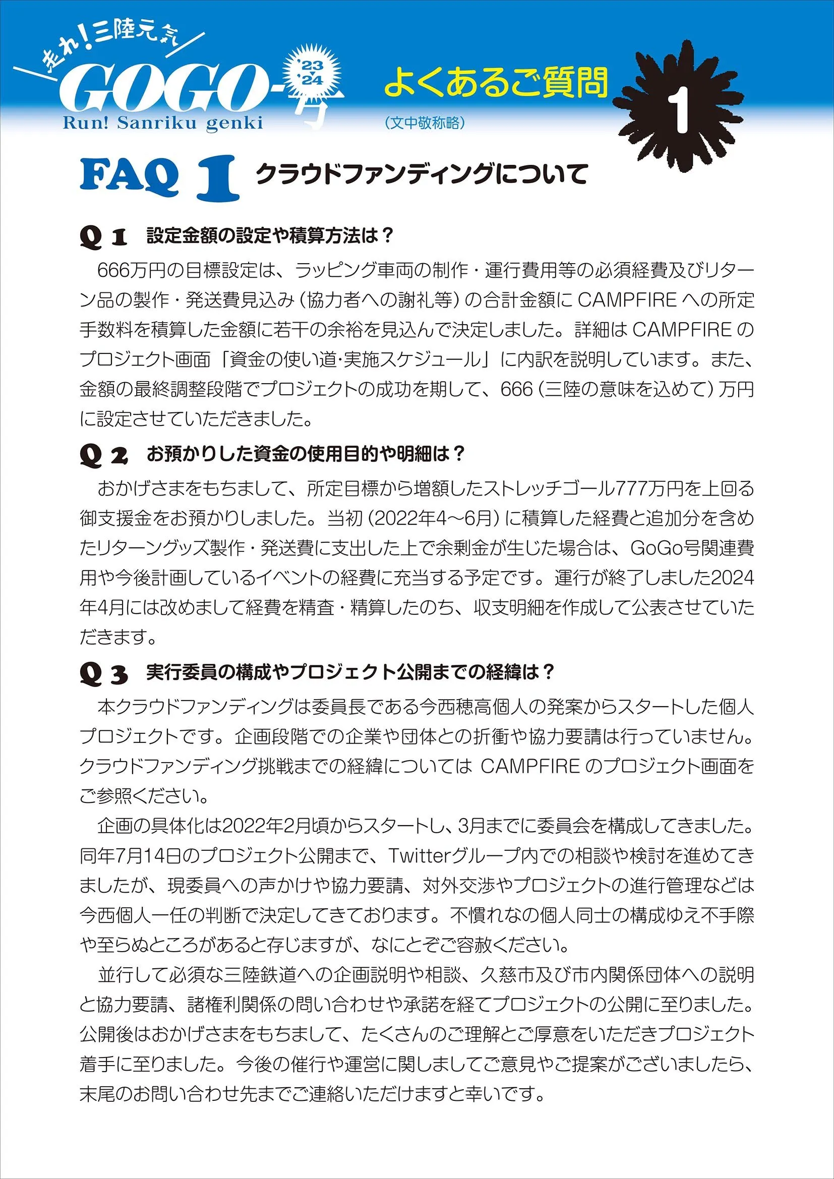 (三陸元気GoGo号に関するFAQ1/4ページをアップします。)