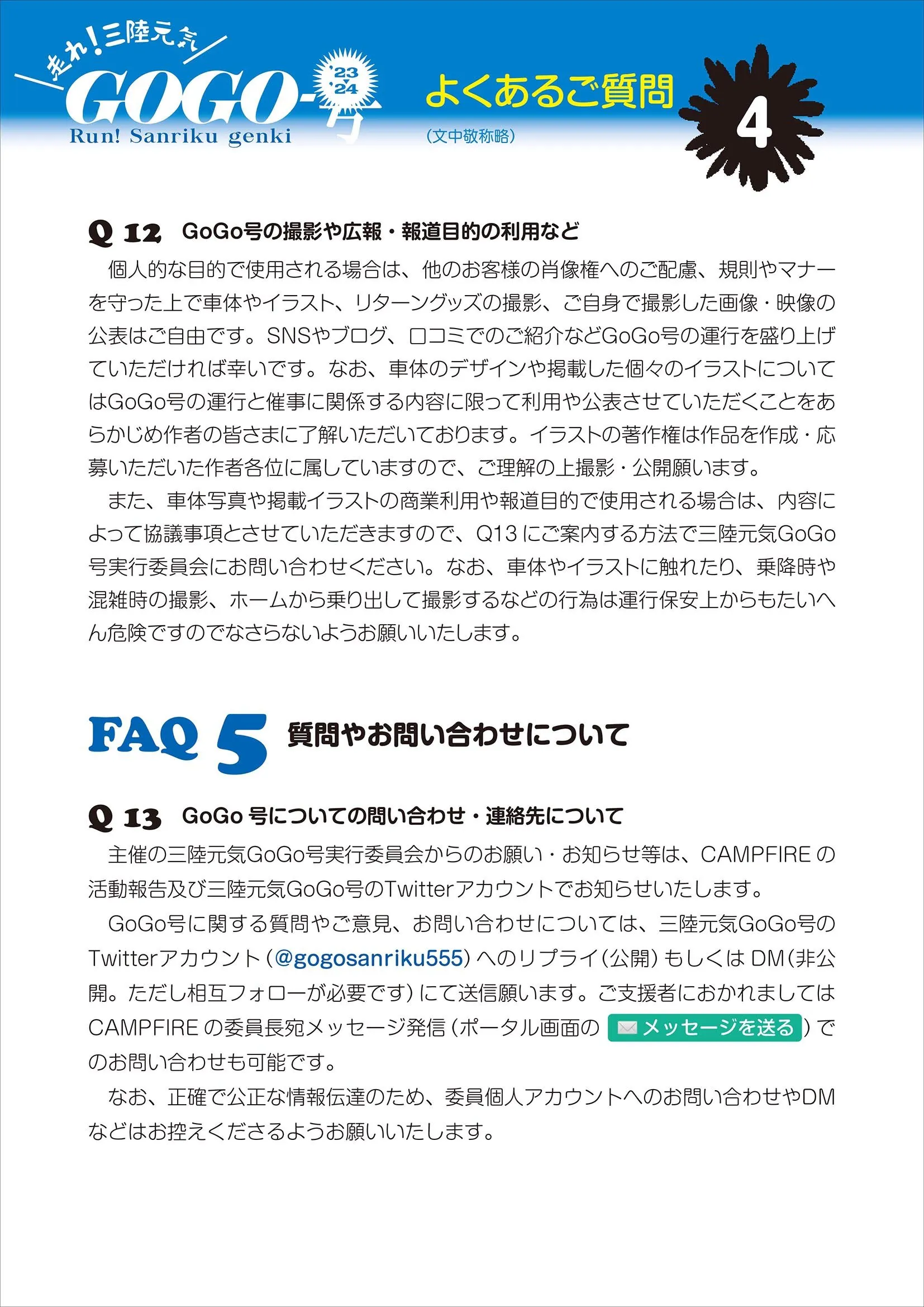 (三陸元気GoGo号に関するFAQ4/4ページをアップします。)