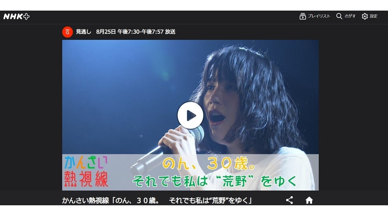 皆様。まなびやマニー(今西穂高)です。熱暑が続いていますがいかがお過ごしでしょうか。今日はのんさんの近況について発信致します。昨日8月25日夜7時30分にNHK関西地区限定の番組「かんさい熱視線」にて30分の特集が放送されました。タイトルは「のん、30歳。 それでも私は"荒野"をゆく」でした。番組の冒頭で三陸元気GoGo号の出発号令をかけるのんさんが映ります。実行委員会としてとても誇らしく、改めて実現できてよかったと喜んでいます。皆様、ありがとうございます。 番組タイトル中の”荒野”は先月リリースされたアルバム「PURSUE(パーシュー:追及する)」に収められた新曲「荒野に立つ」に因んでいます。NHKの番組では楽曲ができあがるまでの経緯について作詞作曲したヒグチアイさんのインタビューも交え、のんさん自ら語っています。日本アカデミー賞の優秀主演女優賞を獲得した「さかなのこ」の沖田修一監督が語るのんさんの魅力も収録されています。そして極めつけは先月の大阪でのロックライブ「PURSUE TOUR 最強なんだ!!!」で熱唱するのんさん。その目には光るものが…。◆視聴方法「NHKプラス」というインターネットサービスから見逃し配信で視聴できます。視聴にはログインが必要ですが無料です。メニュー中の「ご当地プラス」から「関西」を選ぶと見つかります。配信期限は9月8日(金)午後7:57までとのことです。是非ご覧ください。のん、30歳。 それでも私は"荒野"をゆく◆アルバム のん「PURSUE」の情報ですAmazonタワーレコード今西穂高三陸元気GoGo号実行委員会 委員長北三陸久慈市ふるさと大使