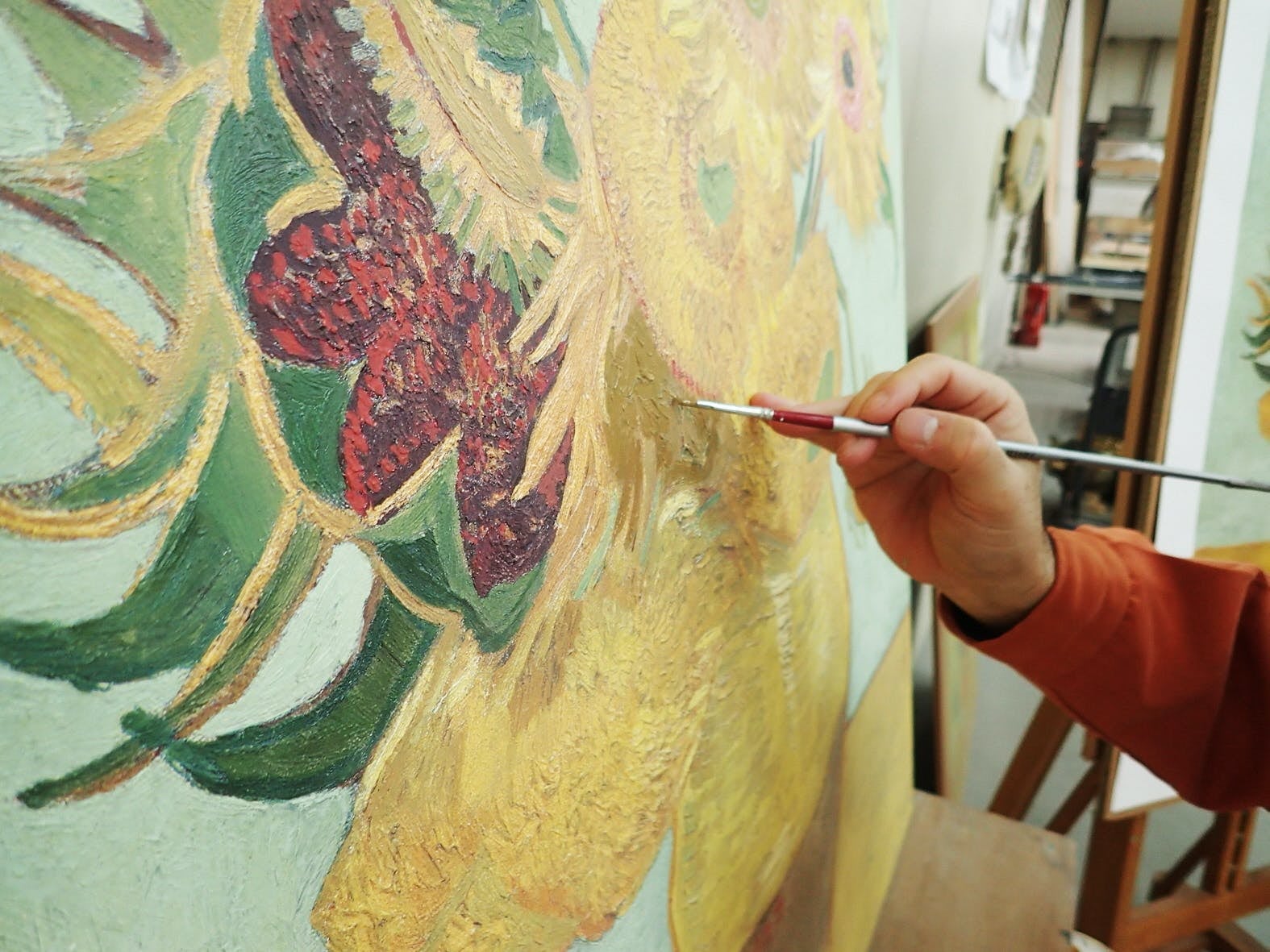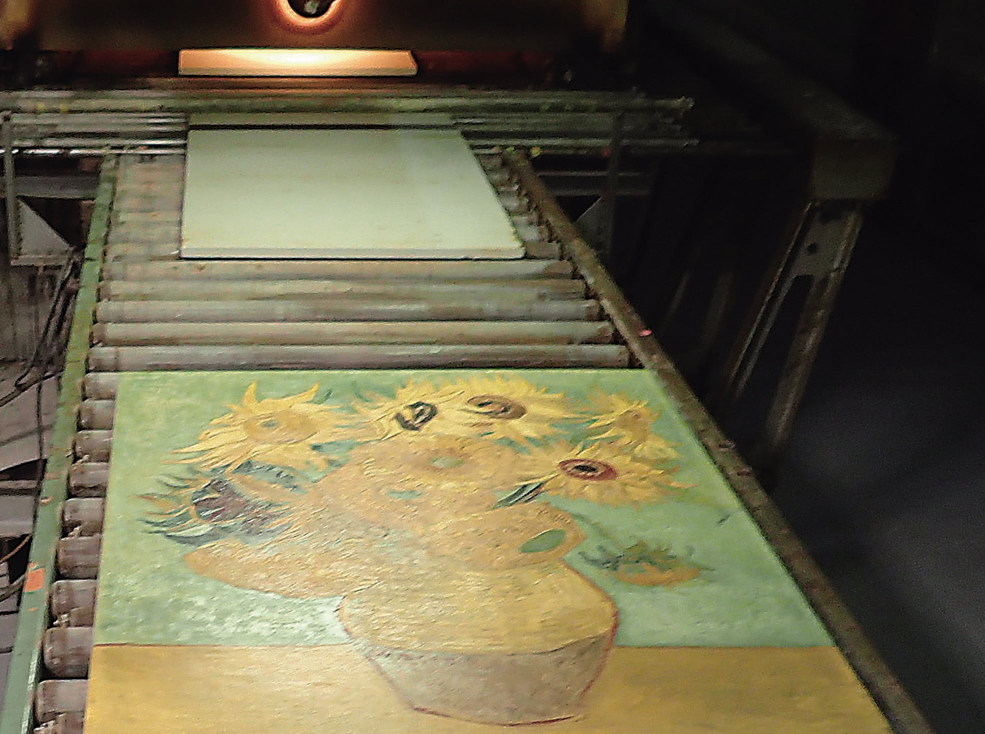 原画>色の分解>転写紙に印刷>陶板に転写>焼成>レタッチ>焼成>検品>陶板名画