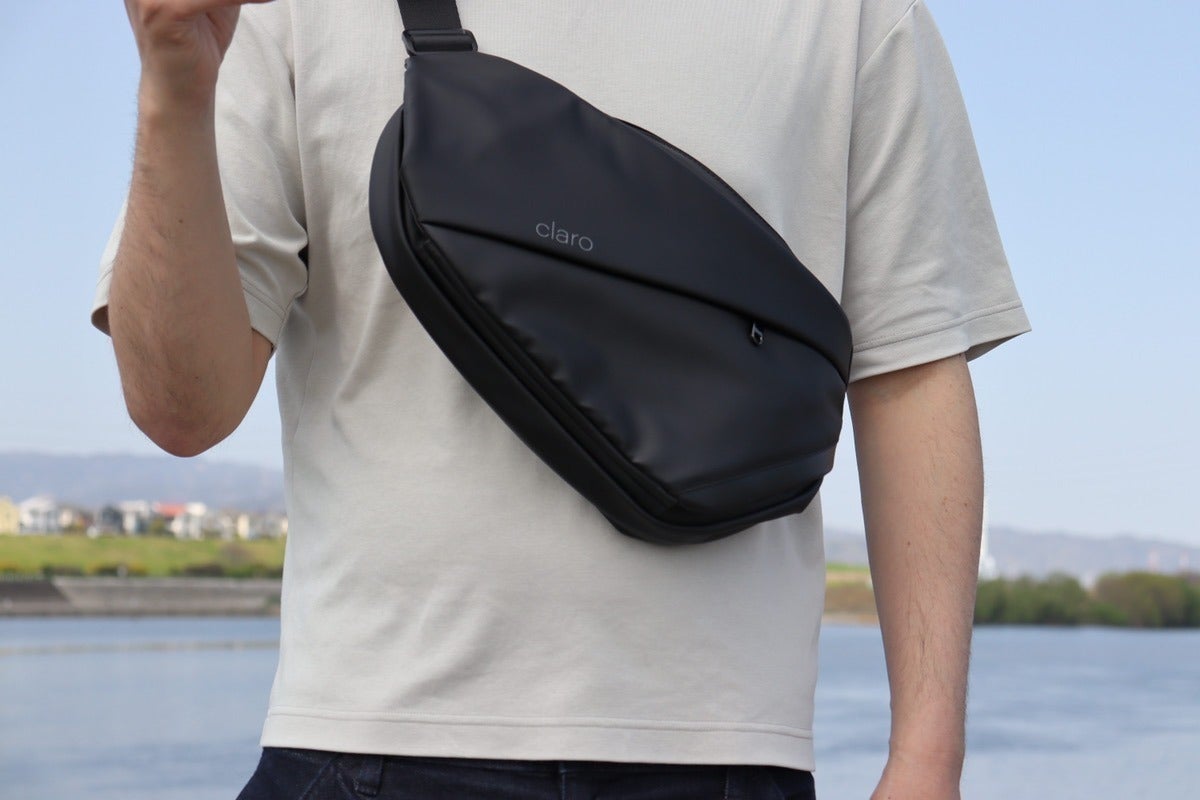 ポケットや手に荷物を持たずにスマートに持ち運ぶために最適化されたサイズ、デザイン、機能性を持つのがclaroスリングバッグです。