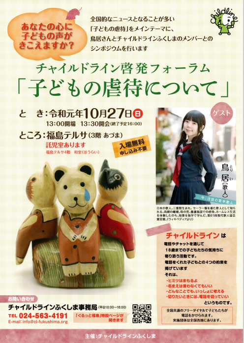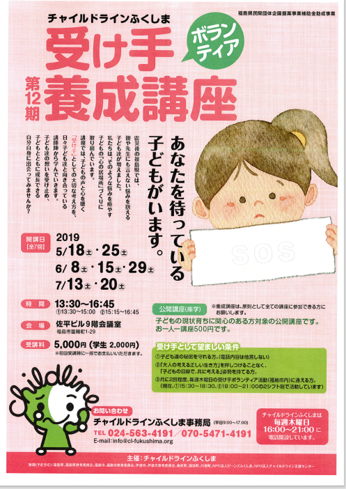 また、その後も台風19号や福島県沖地震など自然災害が多数、福島県を襲いました。さらには新型コロナウイルスの感染拡大で生活環境が大きく変わったことで、保護者による虐待や子どもたちの不登校が増えているということも全国のニュースで耳にします。そのようなことをはじめ、誰にも話すことのできない悩みを持っている子どもが私たちのすぐそばにもいるかもしれません。