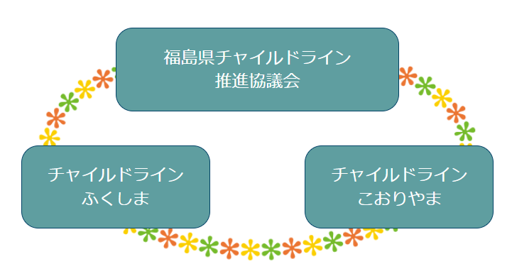 福島県内で活動をしているチャイルドラインは、チャイルドラインこおりやま、チャイルドラインふくしまの2団体があり、福島県チャイルドライン推進協議会は、福島県内チャイルドラインの運営・財政基盤支援に関する事業を行っています。