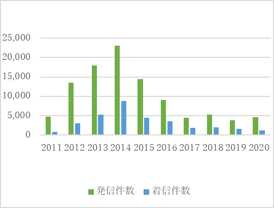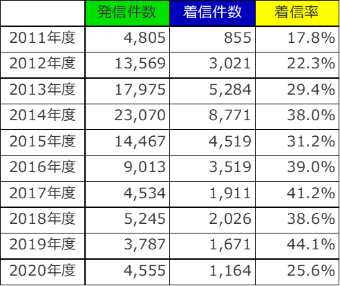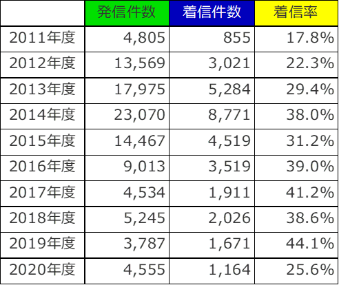 福島県からの電話は、2014年度がピークで23,070件、2020年度は、4,555件と少なくなりましたが、実際に電話がつながったのは1,164件と実に4人に1人の電話しか受けることができず、充分な対応ができていません。