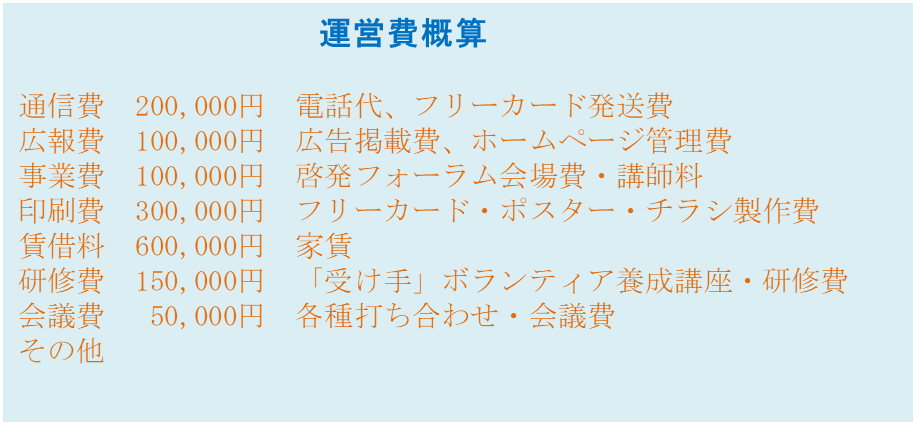 今回はチャイルドラインに、活動資金の援助のお願いです。 でも今後は、子供たちの心のケアをするためには、大人たちが常に子供たちに寄り添って心の変化に気づき、その子に何をしてあげればいいか、どのようにして心の支えになるかを考え、手を差し伸べることです。その役割は、国でも自治体でもなく、子どもたちの側にいる私たち大人が果たすべき責任です。