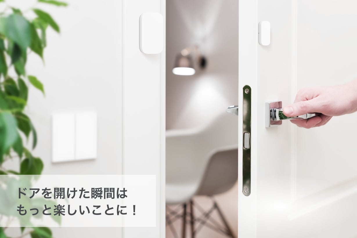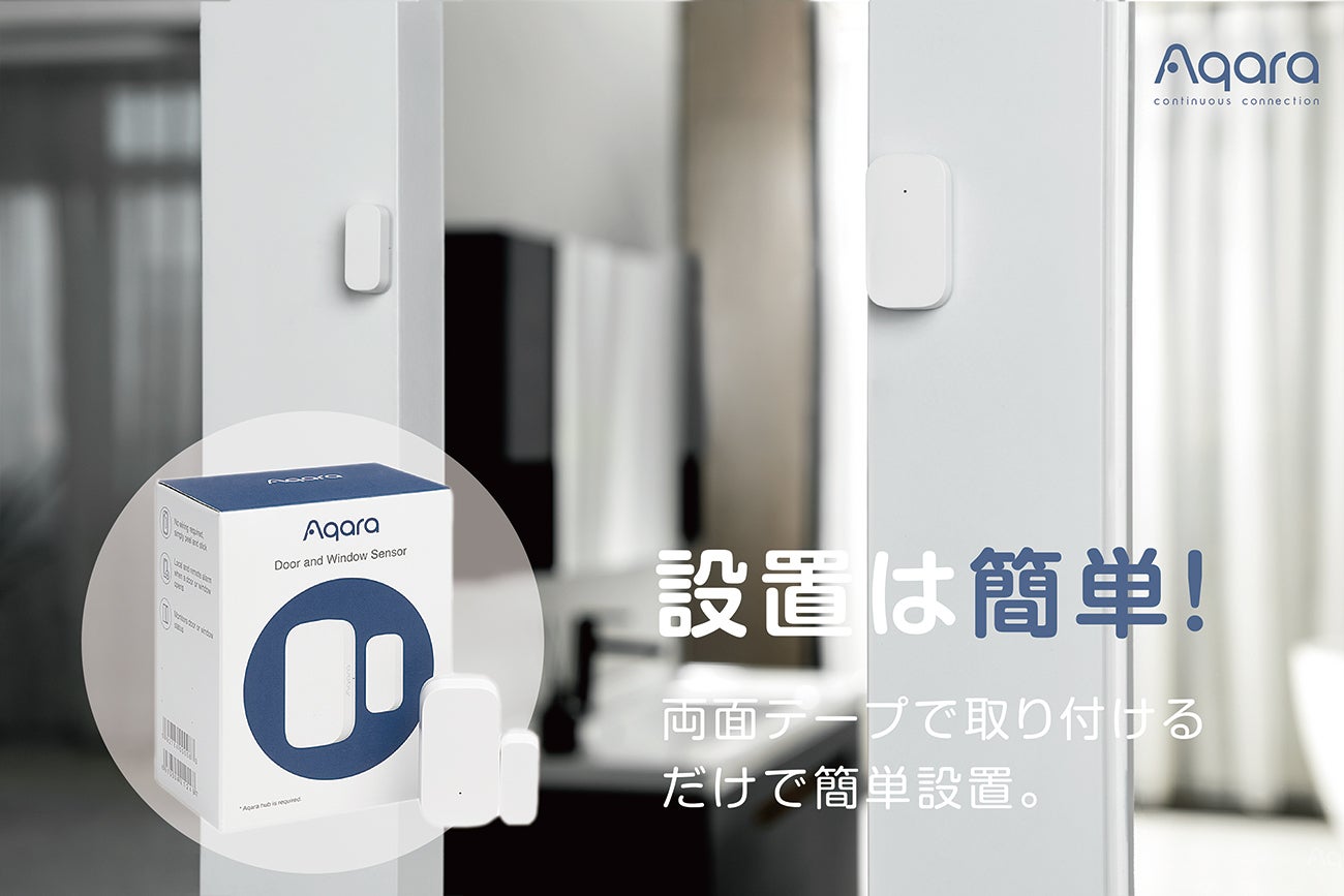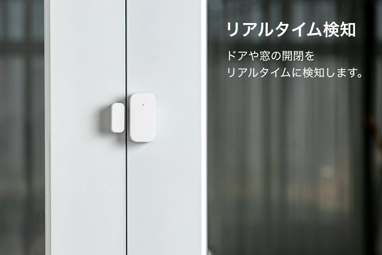 Aqaraドア・窓センサーを自宅のドアや窓に取り付けることで、ドアや窓の開閉をリアルタイムに感知することが可能。