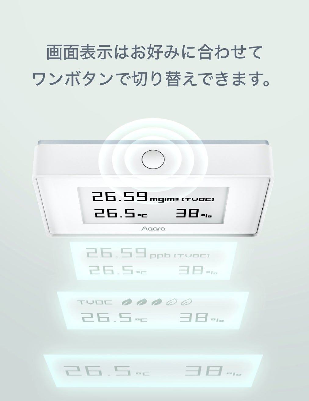 ⬇︎⬇︎⬇︎Aqara TVOC空気質モニターの特徴を1つずつ見ていきましょう⬇︎⬇︎⬇︎