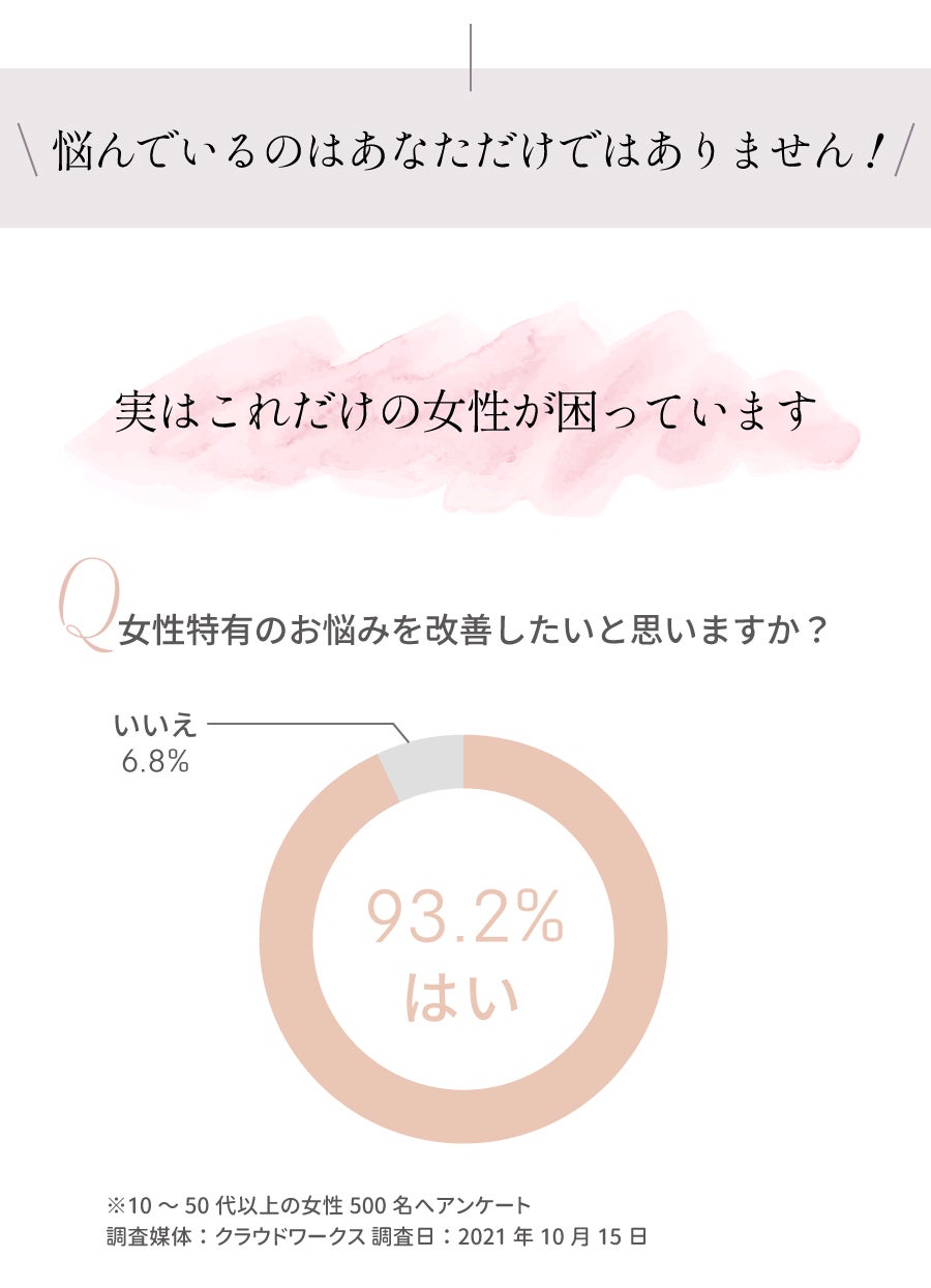このように女性特有の問題は社会全体が女性個人の我慢や忍耐、努力に依存してしまっています。それって健全な社会なんだろうかと思い、今回すべての女性が心地よく過ごせるためのプロジェクトを立ち上げました。