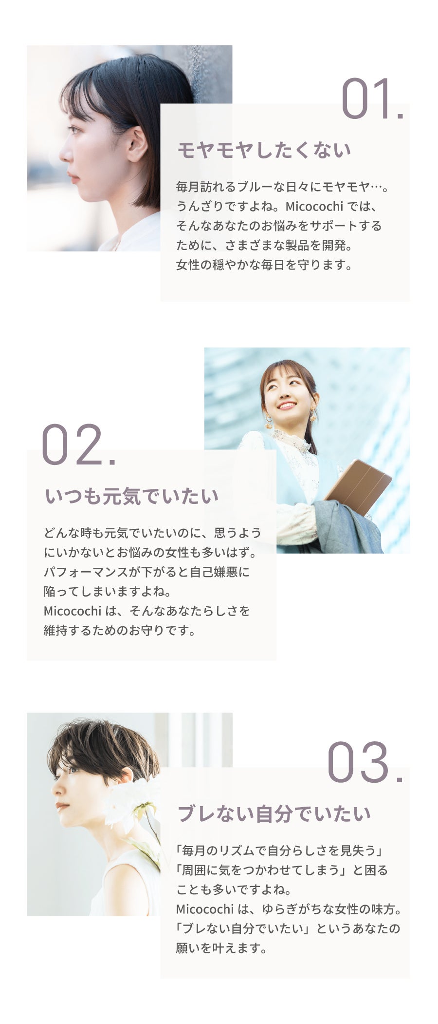 しかし、社会は優しくなったとしても、毎月のリズムとは上手に付き合っていくしかない......。そう思ったときに出会ったのが『Micocochi』でした。