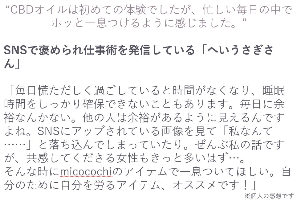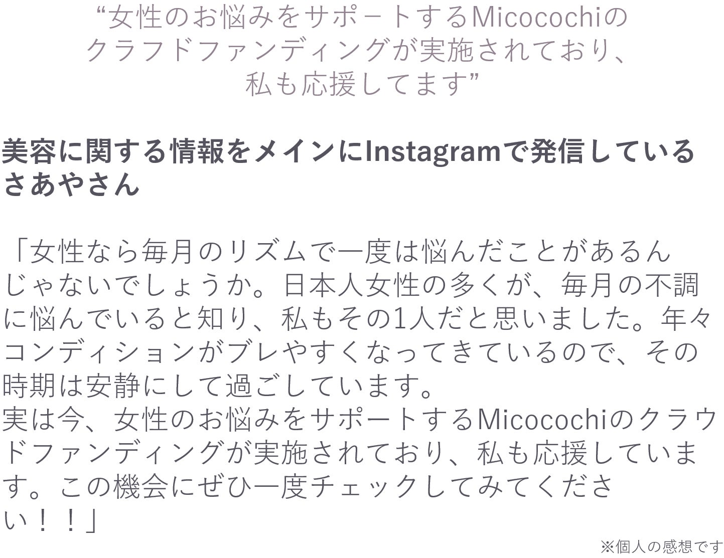 初めてMicocochiを使うとき、『どんな感じなんだろう?』とドキドキしたのですが、思った以上に使いやすく、これなら習慣化しやすい!と感じました。