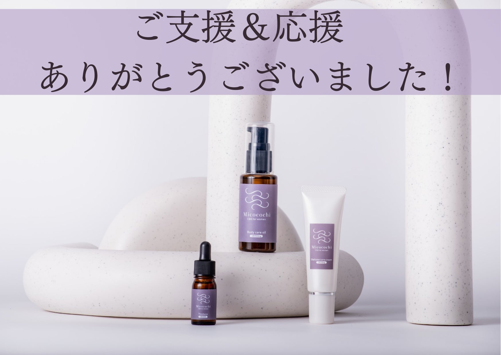 2022/09/21 12:55改めまして、この度は短い間ではありましたが、沢山のご支援や応援メッセージを頂き誠にありがとうございました。おかげさまで100%に到達しクラウドファンディングを終える事が出来ました!このクラファンは準備期間からクラファン中にかけて、たくさんの方々のご助力をいただき、やっと完走する事が出来ました!このクラウドファンディングに係わってくださった沢山の方々にお礼をさせて頂きます。誠にありがとうございました!!最後になりますが、代表の言葉で締めさせていただきます。ー------------------------------------------すべての人に「心地よい」毎日を― 女性特有の悩みで過去に仕事を辞めざるをえなかった…。 そんなスタッフの経験談をきっかけに開発が始まった フェムケアに特化したCBD『Micocochiーミココチー』 発売に先立ち、 「毎月のリズムを快適に!自分らしく働きたい女子のための心が整うフェムケア」 と題しクラウドファンディングを展開しました。たくさんの皆様にご賛同いただき、目標金額を超えるご支援をいただくことができました!ほんとうにありがとうございます。『Micocochi』シリーズおよび各種活動につきまして多方面より関心をお寄せいただき、 また、取り上げていただきましたこと、心より感謝申し上げます。 ご支援頂きました皆様への返礼品は随時発送してきます。皆様の「心地よい」日々の一助になりましたら幸甚です。引き続きご愛顧賜りますようお願い申し上げます株式会社スタージャパン 代表取締役社長 奥 優克 もっと見る