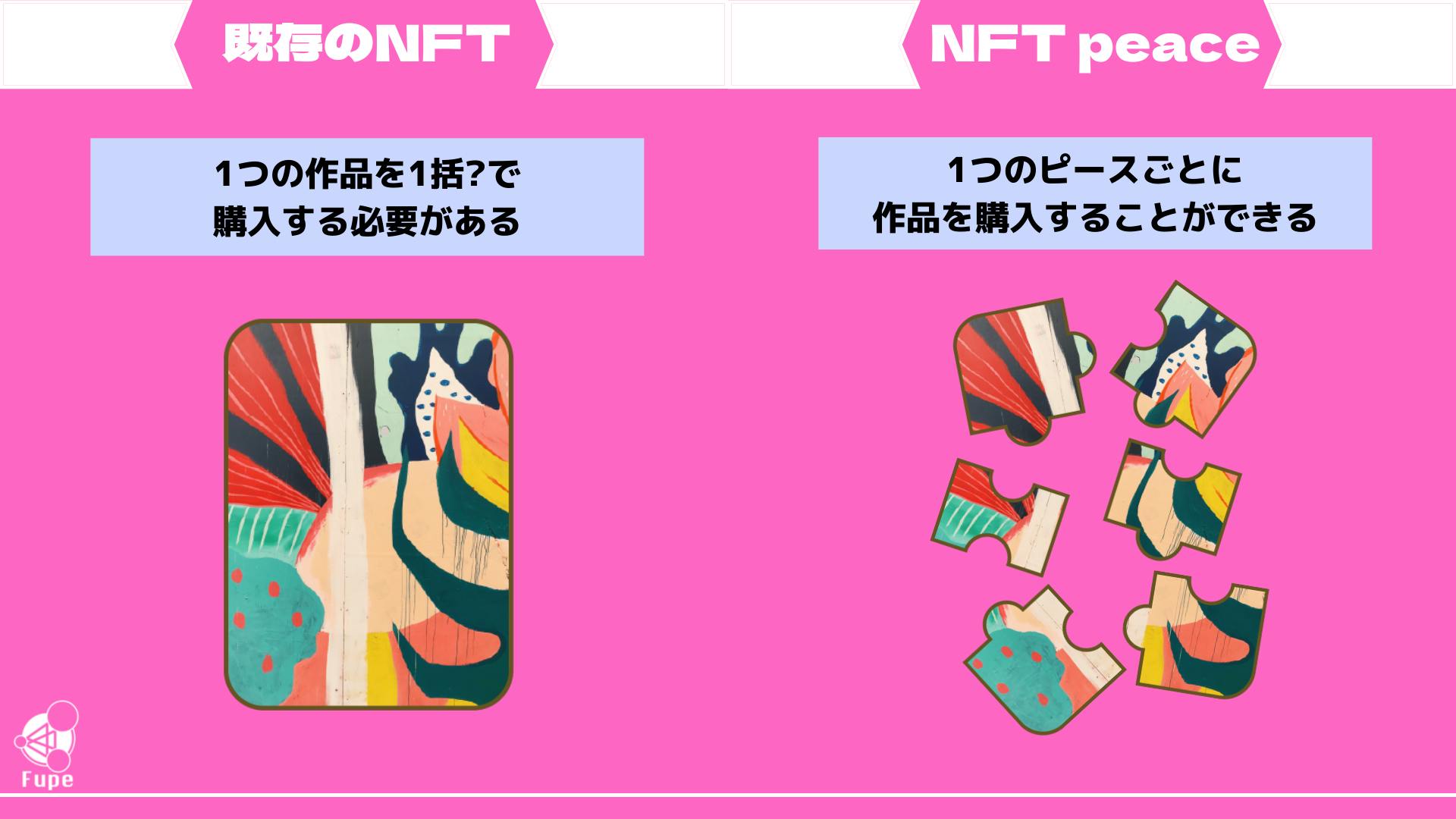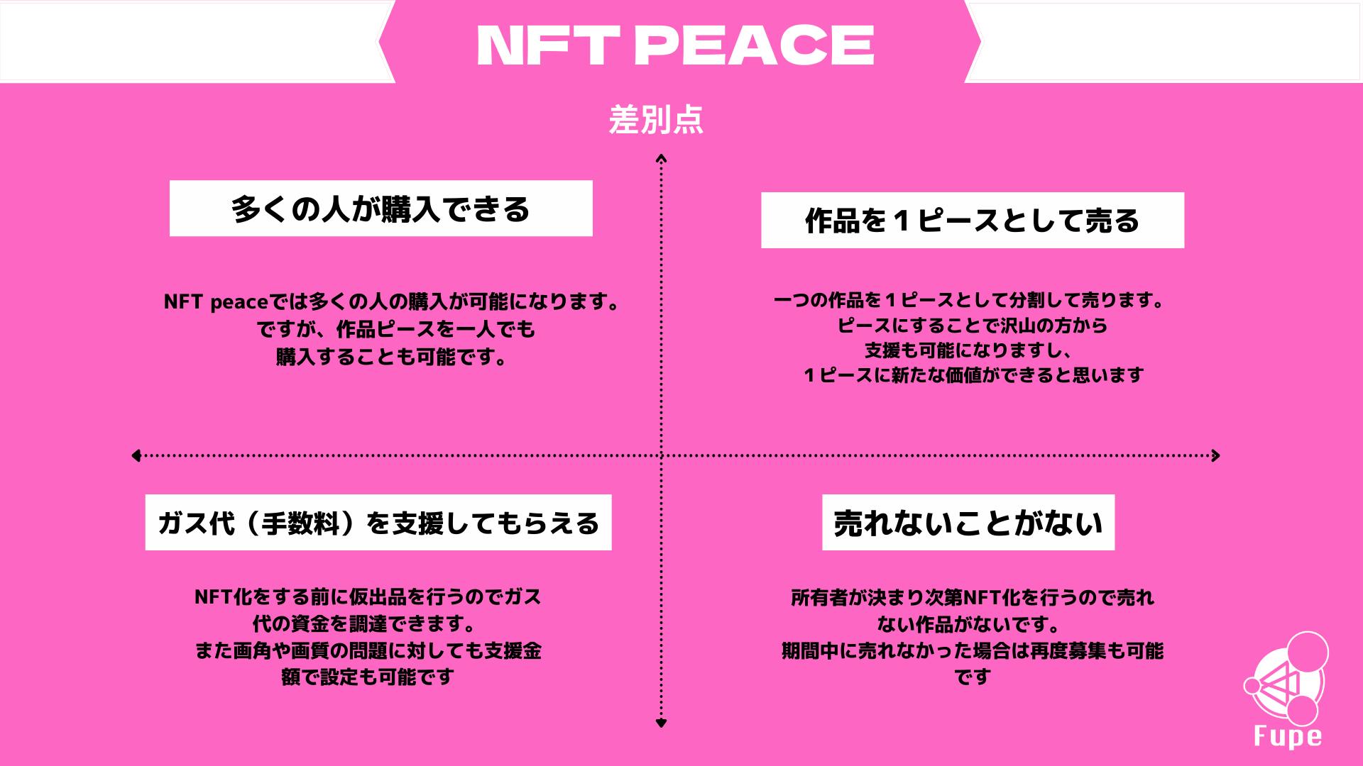 現在のNFTアートとNFT Peaceの差別点が以下の内容です