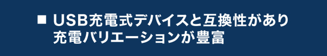 8mmアダプタケーブル付きのUSB充電式デバイスと互換性があります