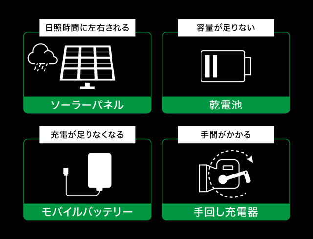 家庭に備えている「防災用発電用品」の多くは一長一短があります。