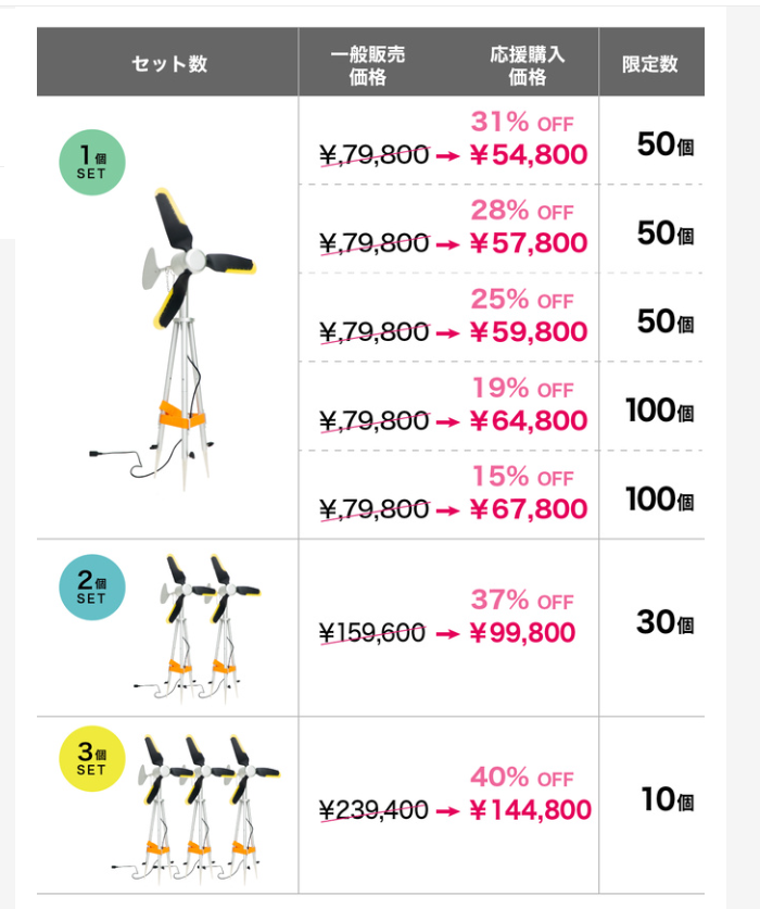 そこで今回のプロジェクトである「ポータブル風力発電」をソーラー発電機等と補完的に使用していただき万全の備えを皆様にして頂きたくmachi-yaでプロジェクトを開始いたしました!