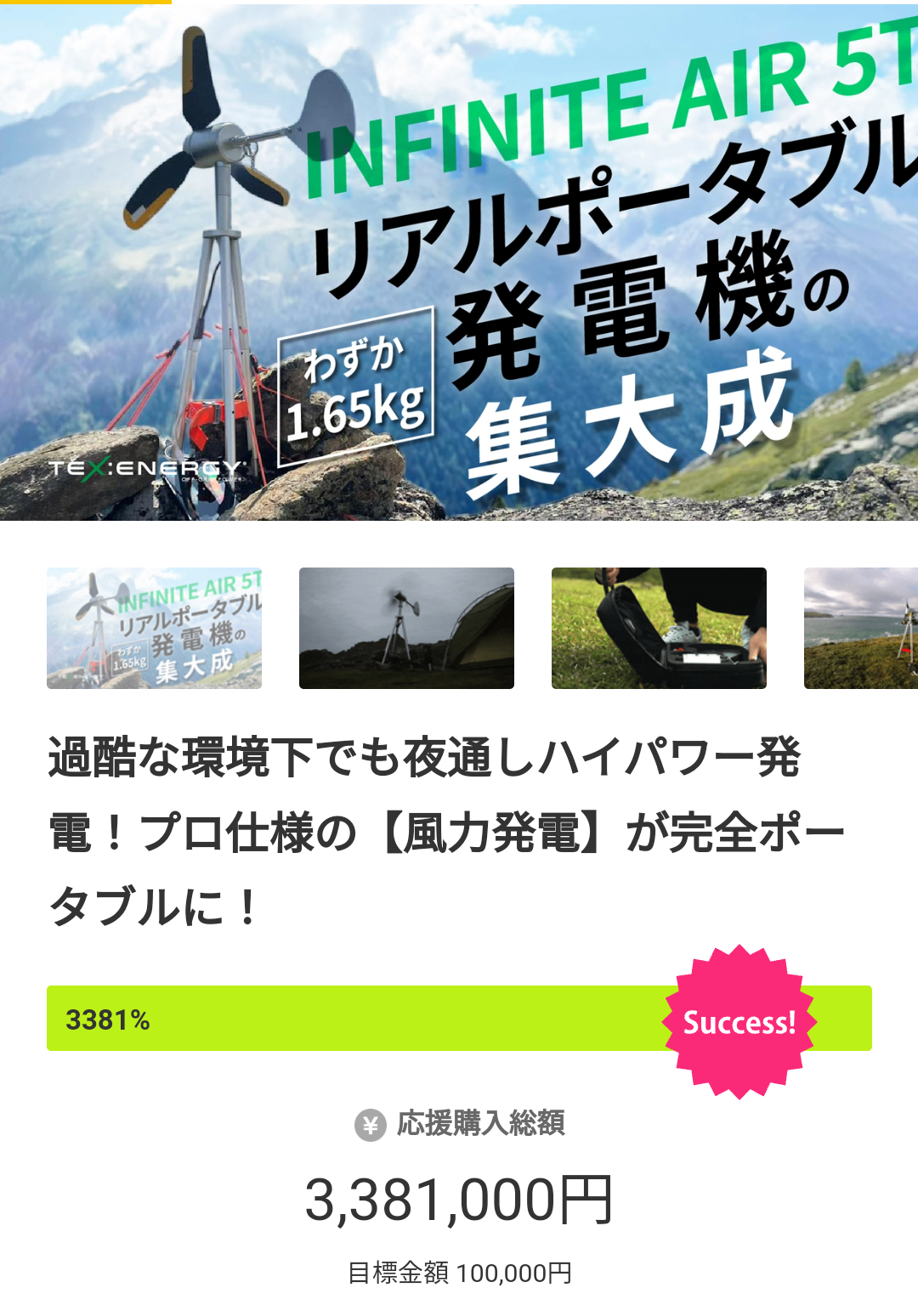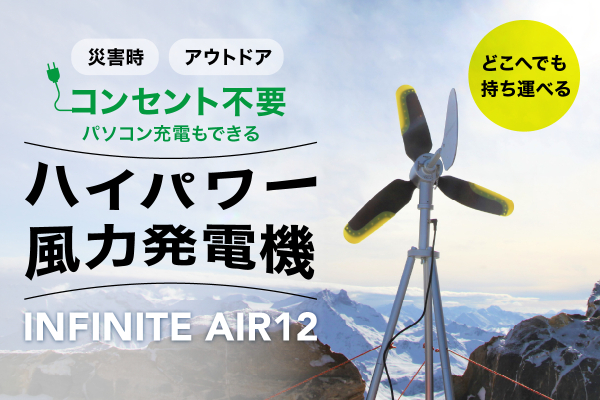 今回、TEXENERGYチームの自信作で革新的なポータブル風力発電機「INFINITE AIR 12」を日本の皆様の手にお届けできるのを楽しみにしております。