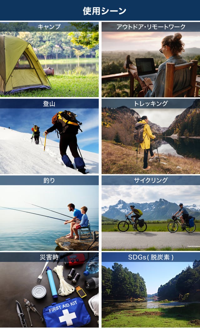 本商品をソーラー発電機等と補完的に使用していただけると万全の備えとなり、特に災害時は威力を発揮いたします。