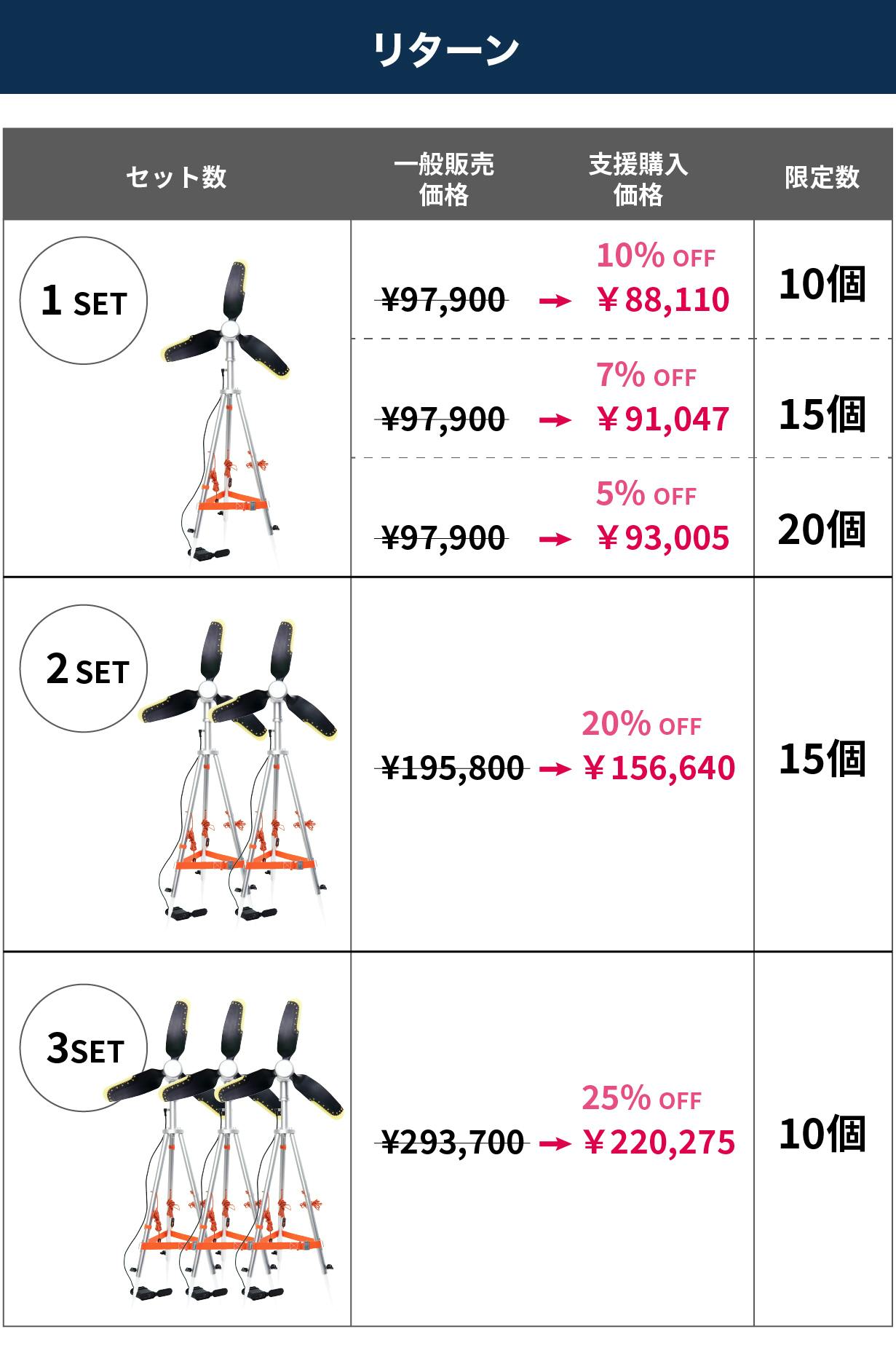 ●リターン価格:各リターン記載の通り *商品内容についてはリターン欄記載の通り