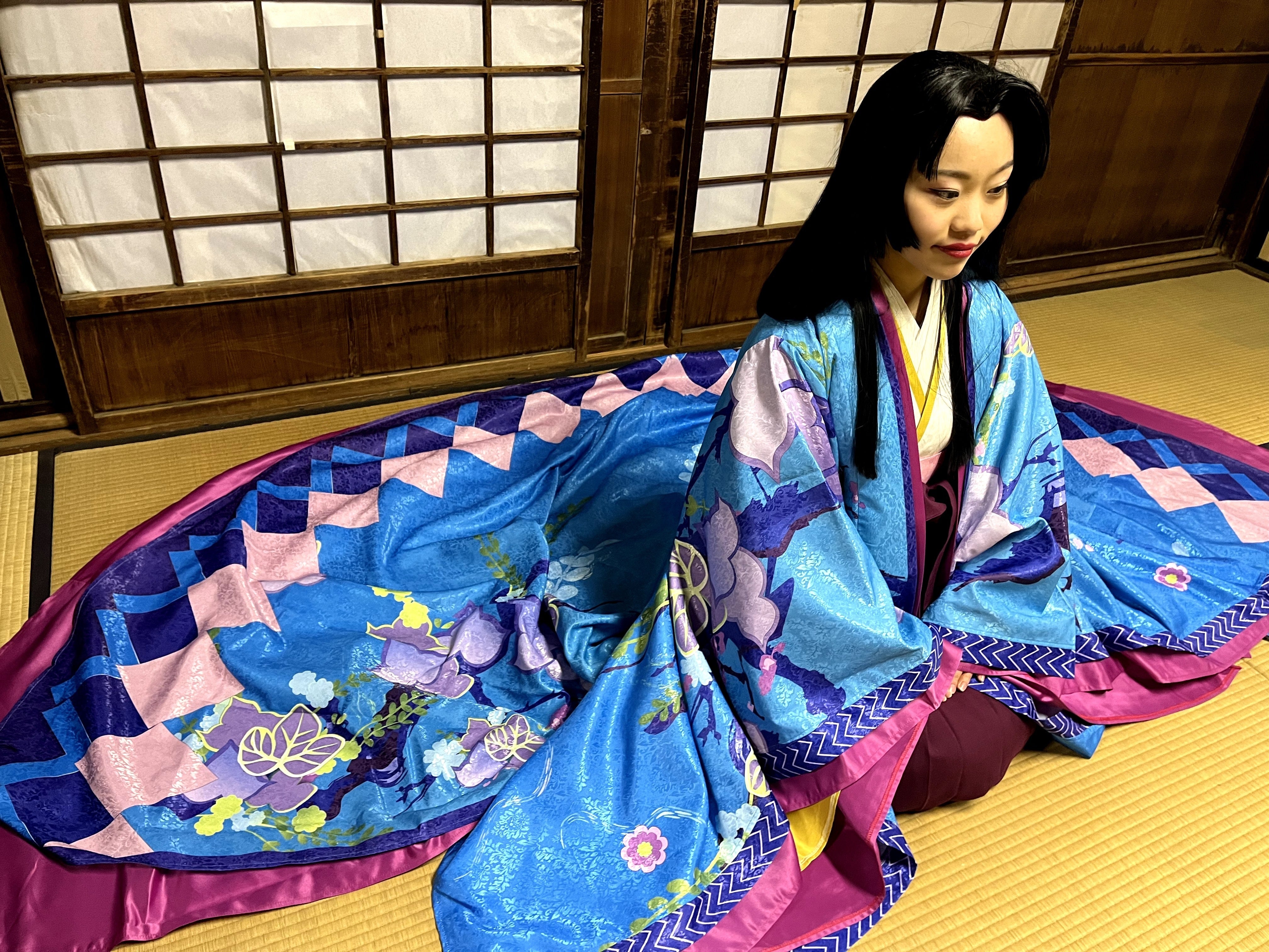 富士五湖(西湖)での撮影風景。平安時代の扮装での主演の二人。印象的なシーンが撮れました。