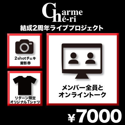お好きなメンバーと撮影出来るチェキ券とTシャツ、そしてメンバー全員とオンライントークが出来るセット!プライベートな一面が垣間見れる特別な時間をお届けします!
