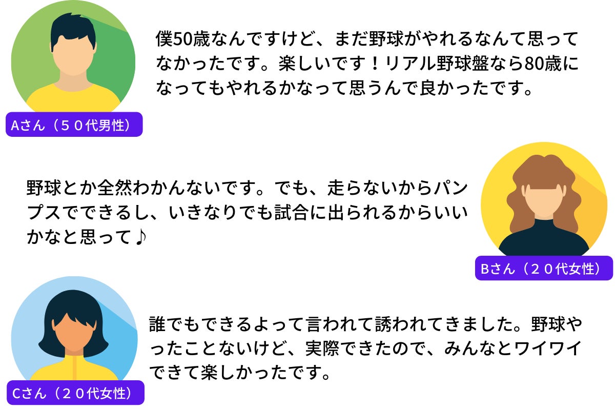 このプロジェクトでは、リアル野球盤の楽しさ、いろんな仲間との時間共有、生涯スポーツをすることの大切さをお伝えしたいと思います。
