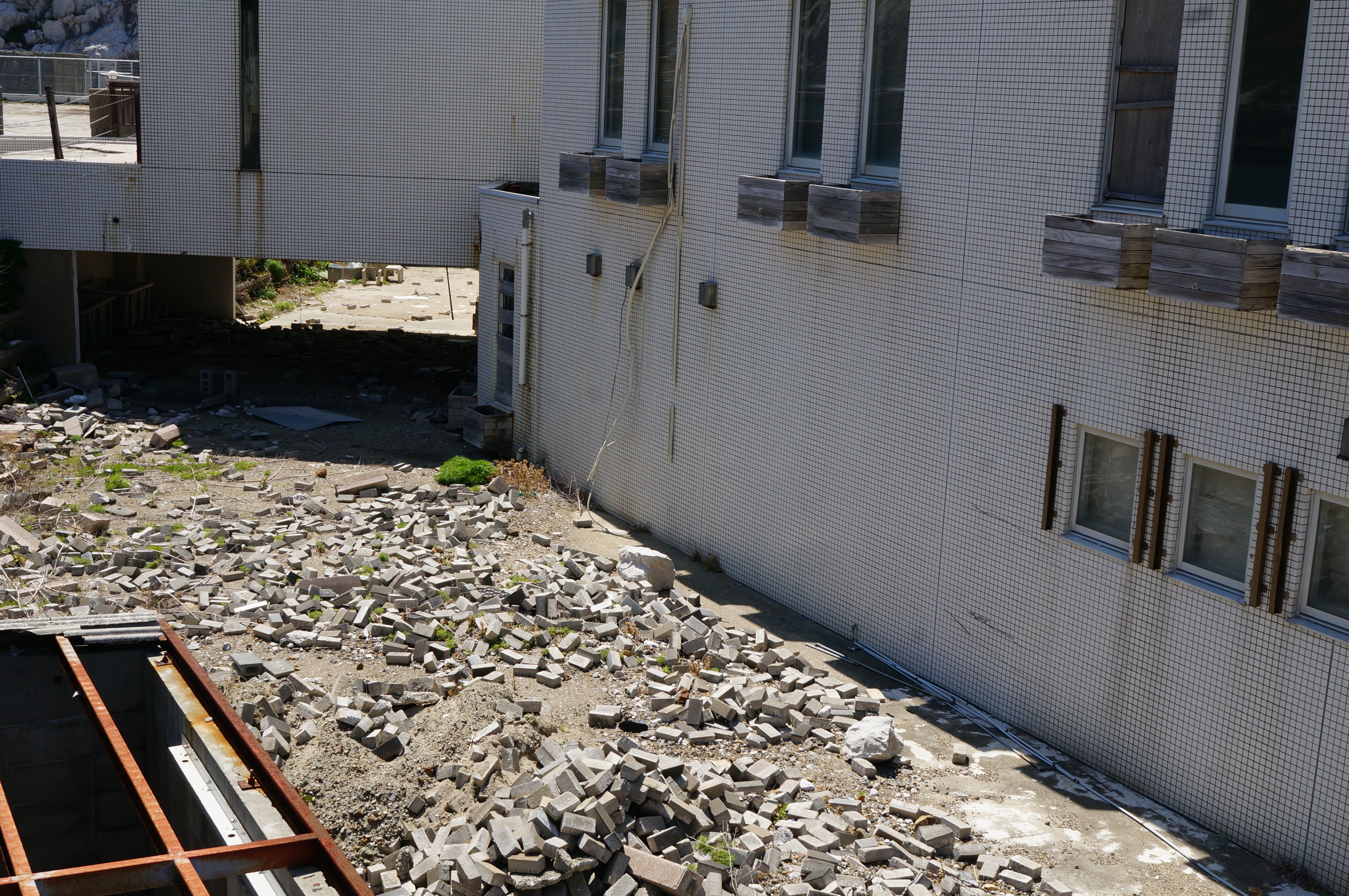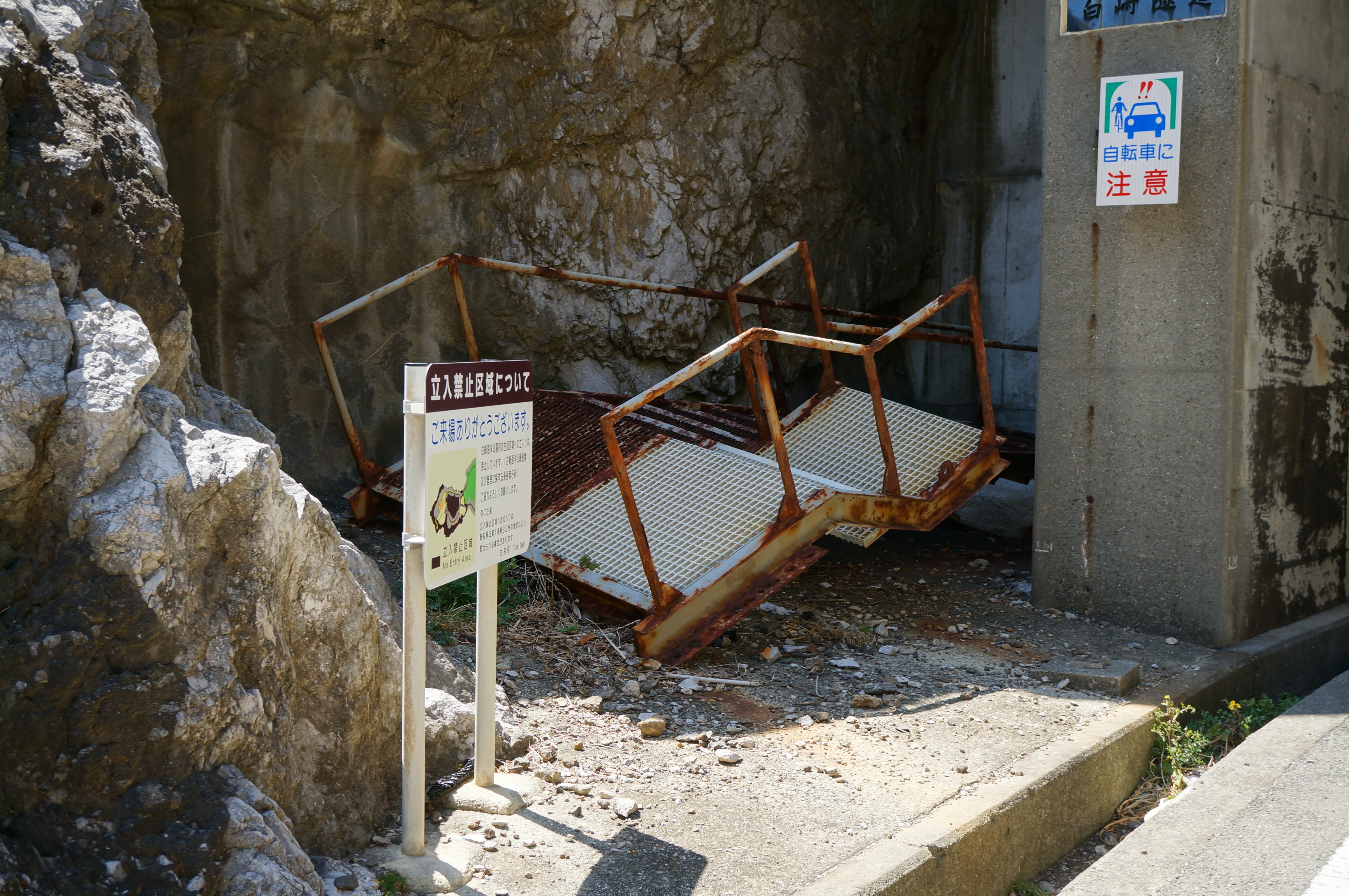 ▼無残にも台風の影響で壊れてしまった階段。未だ残されています。▼