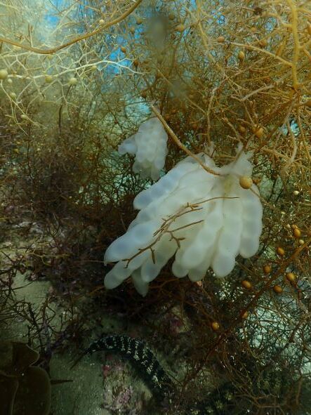 2022/06/01 12:19例年に比べ水温が高くなるのが早い今年はまだ6月だというのに既に水温が23℃!おかげで海の中は普段と違うことがいっぱいです。夏頃から小さな子どもサイズのが現れだすダテハゼですがもう人差し指サイズの個体がテッポウエビと共生中!越冬しないクマノミが5月から見ることが出来ています!そして初夏になると産卵するアオリイカがすでに登場し今回最初の卵を見ることが出来ました。画像の白いエンドウ豆みたいのが卵です!これから更に増えだすことでしょう。産卵シーンがもしかすると見られるかもしれませんよ!? もっと見る「白崎水中洞窟」解禁です!