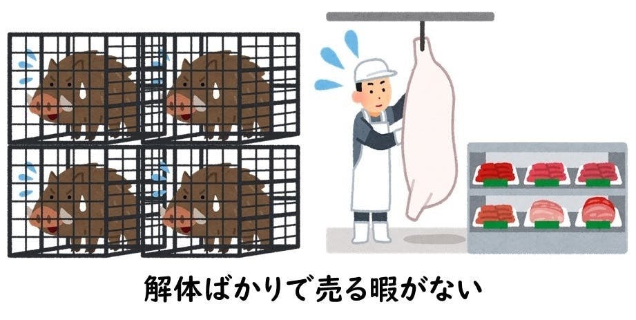また、野生動物はいつ獲れるか分からないため、一気に獲れて大量の不良在庫を抱えてしまう場合や、逆に売る肉が足りない場合もあり安定供給が難しいのも特徴です。出口である販売が行き詰まると、ジビエの循環はそこでストップしてしまいます。