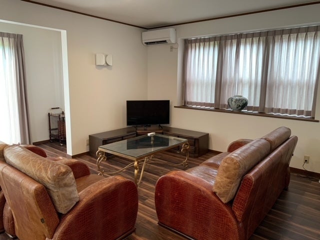 広いLDKには大型のテーブル等の家具、TV、プロジェクターも用意しております。