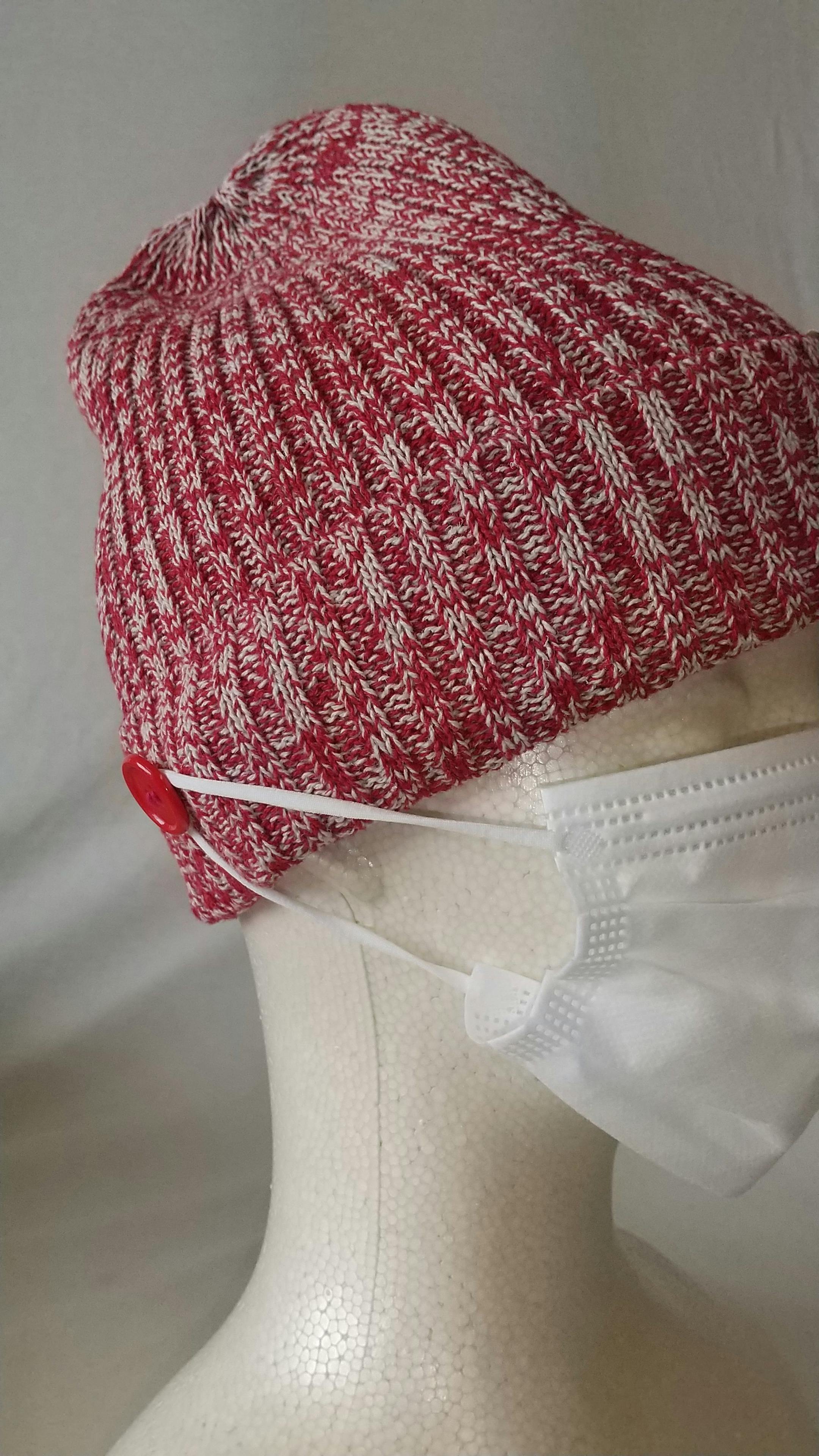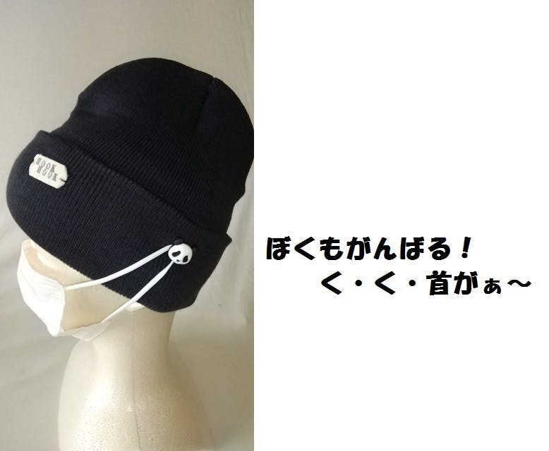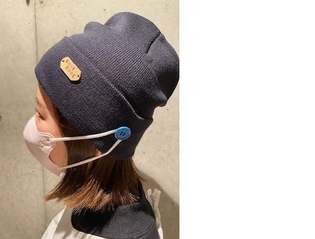 考えそれなら帽子にマスクの紐をかけるボタンをつければどうかと判断
