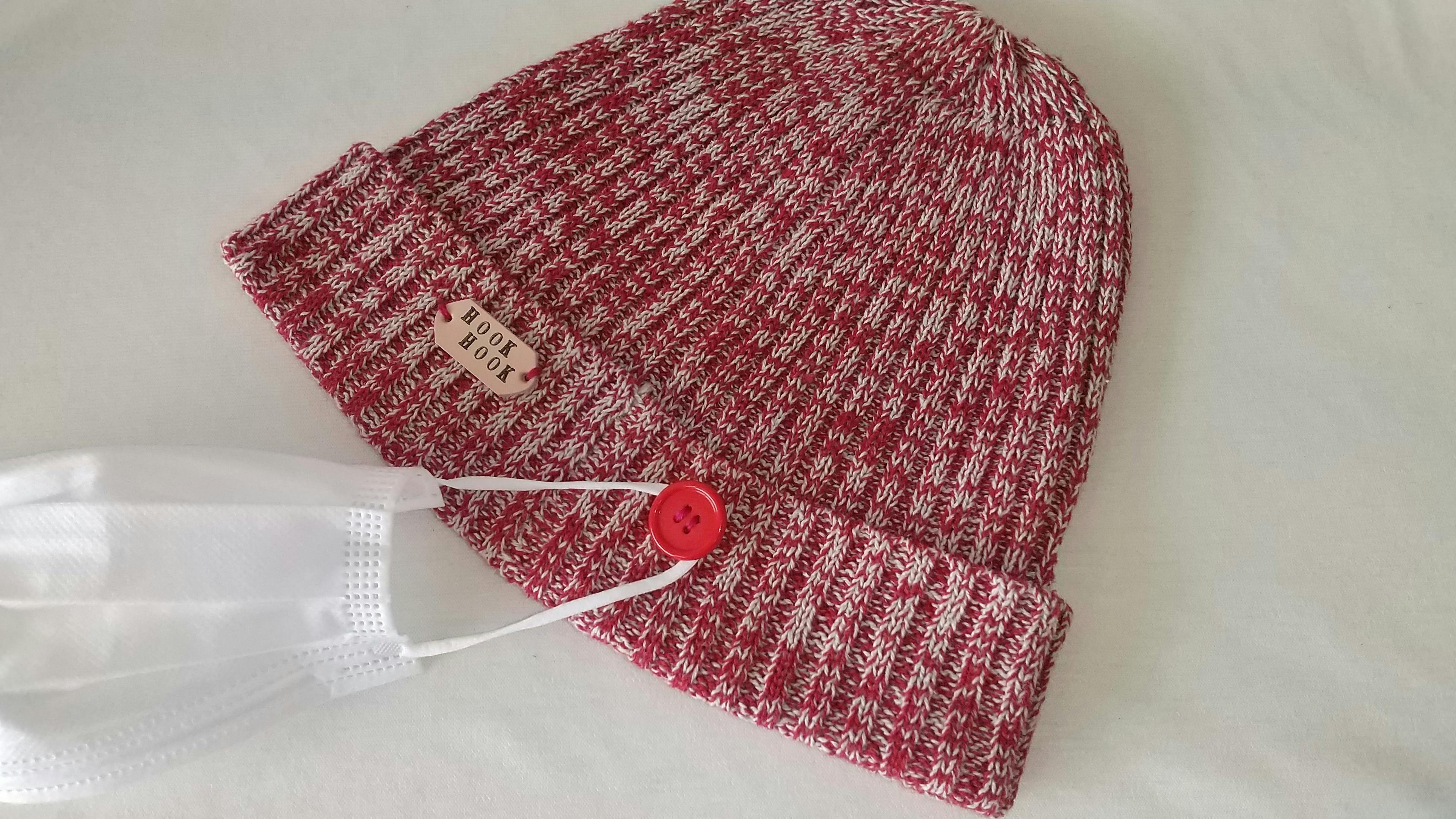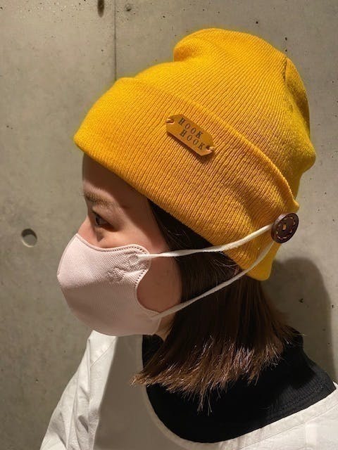 マスクボタン付きニット帽、キャップ等で実用新案登録済みです。