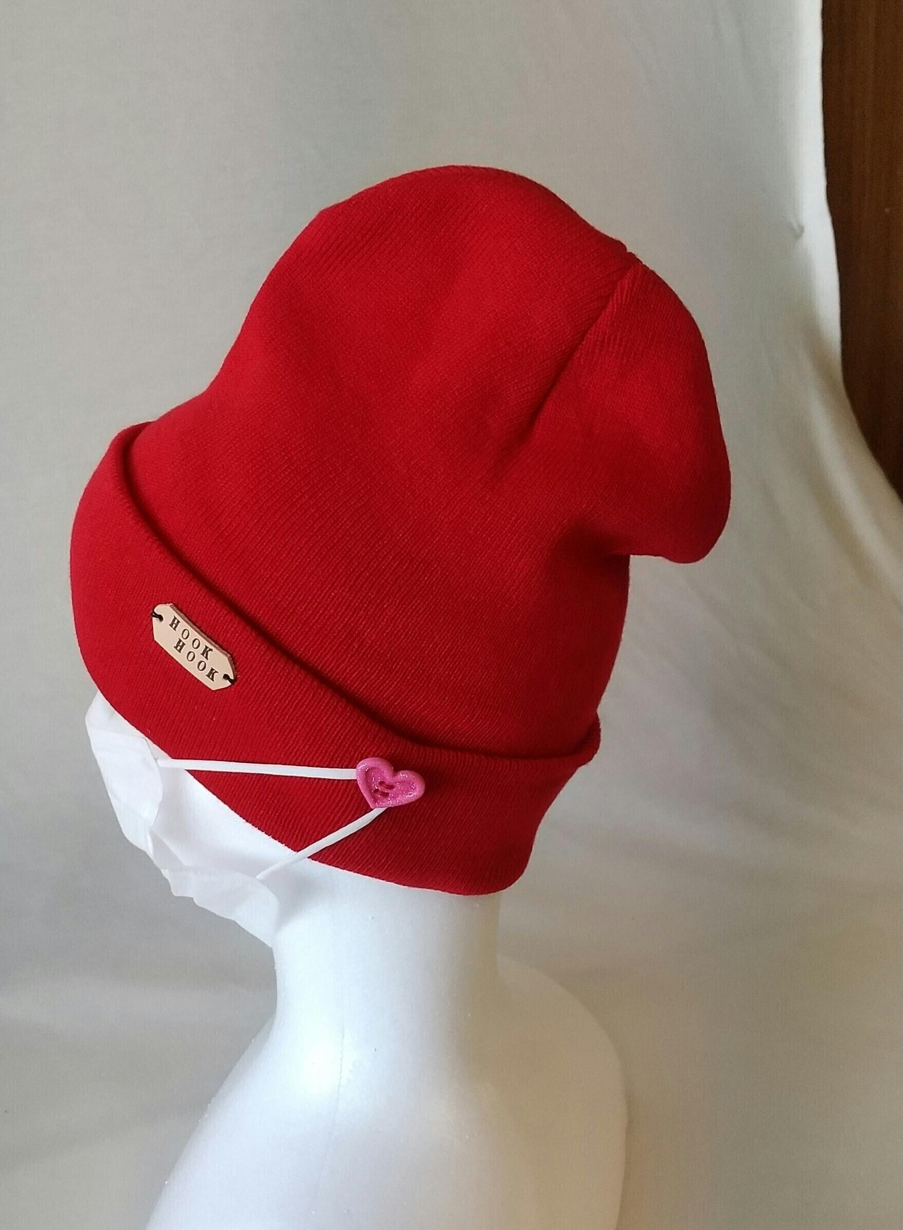 真っ赤な帽子にハートボタン、かぶれが恋もかなうかも?