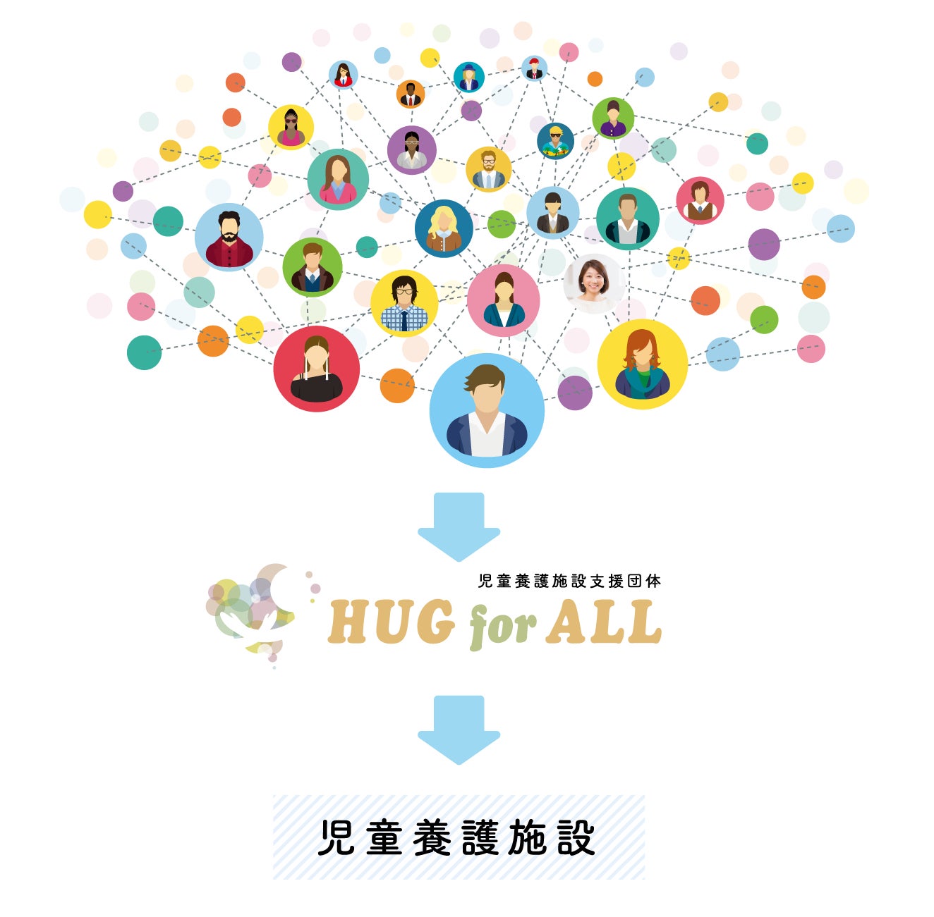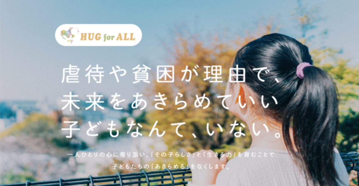 特定非営利活動法人HUG for ALL(ハグ・フォー・オール)は、あそびやまなびを通じて児童養護施設の子どもたちの「生きる力」を育み、18歳で施設を出たあとも子どもたちの「安心できる居場所」としてサポートを続けていこうとしている団体です。