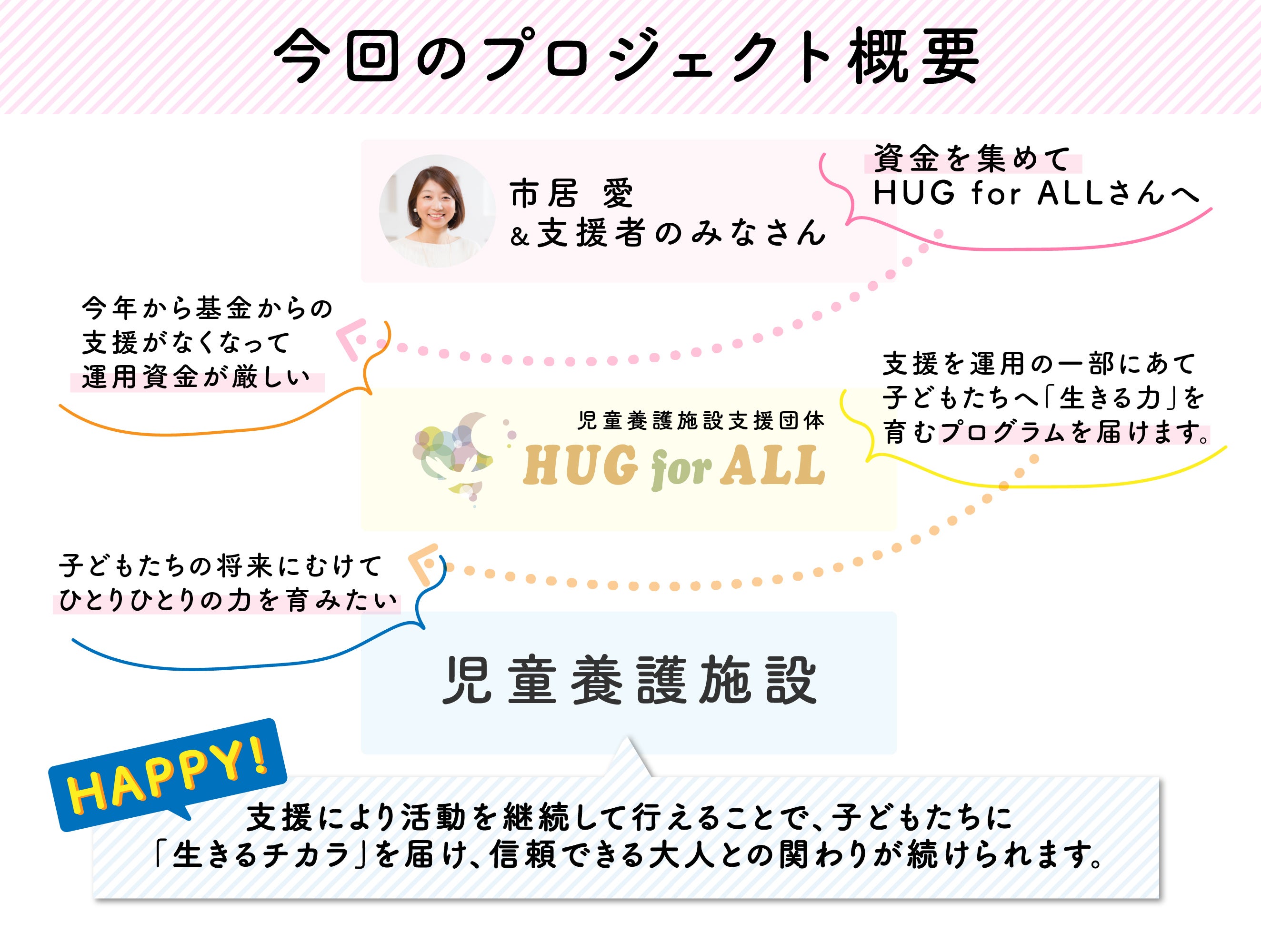 このプロジェクトを通して、愛さんの「自分が望む世界にお金をつかう」というというビジョンに共感されるみなさまに、社会的養護のことや、児童養護施設のこと、HUG for ALLの活動を知っていただけますと幸いです。