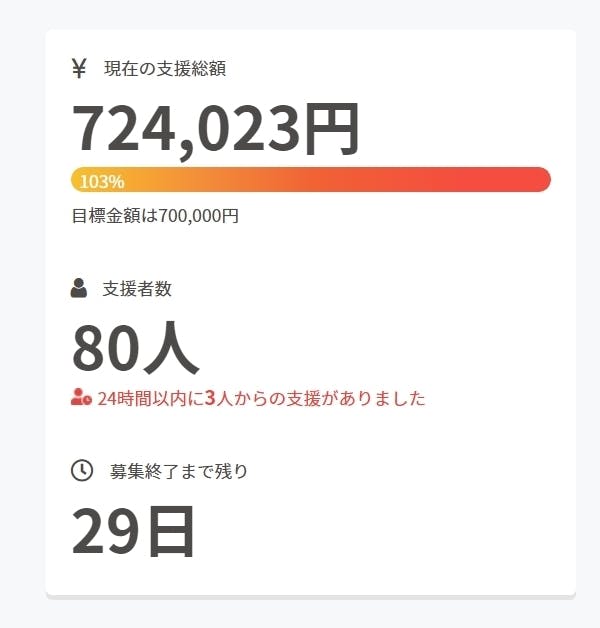 このプロジェクトは、2022/03/19に募集を開始し、 136人の支援により 1,080,523円の資金を集め、 2022/04/30に募集を終了しました