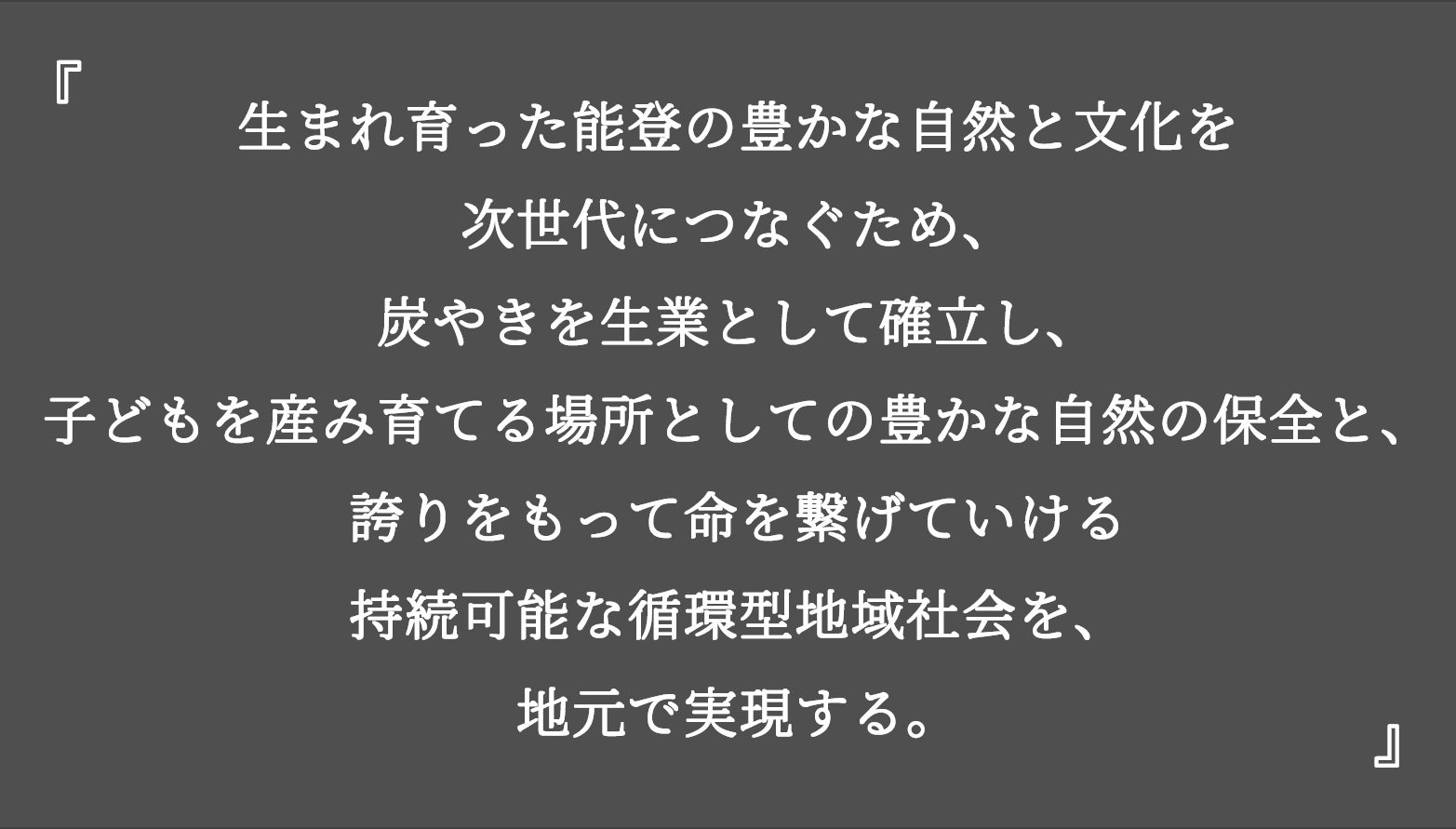 この土地で炭を焼く職人として、私たちには『ミッション』があります。