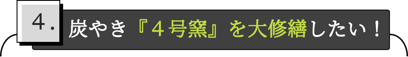 3号窯は、窯の天井部分が落ちてしまっており、今まさに自分の手で修理しています。4号窯は、窯のほとんどを作り直す必要があり、大規模な工事となるため、今回ご支援いただくお金はすべて、4号窯の修繕費用に充てさせていただきます。
