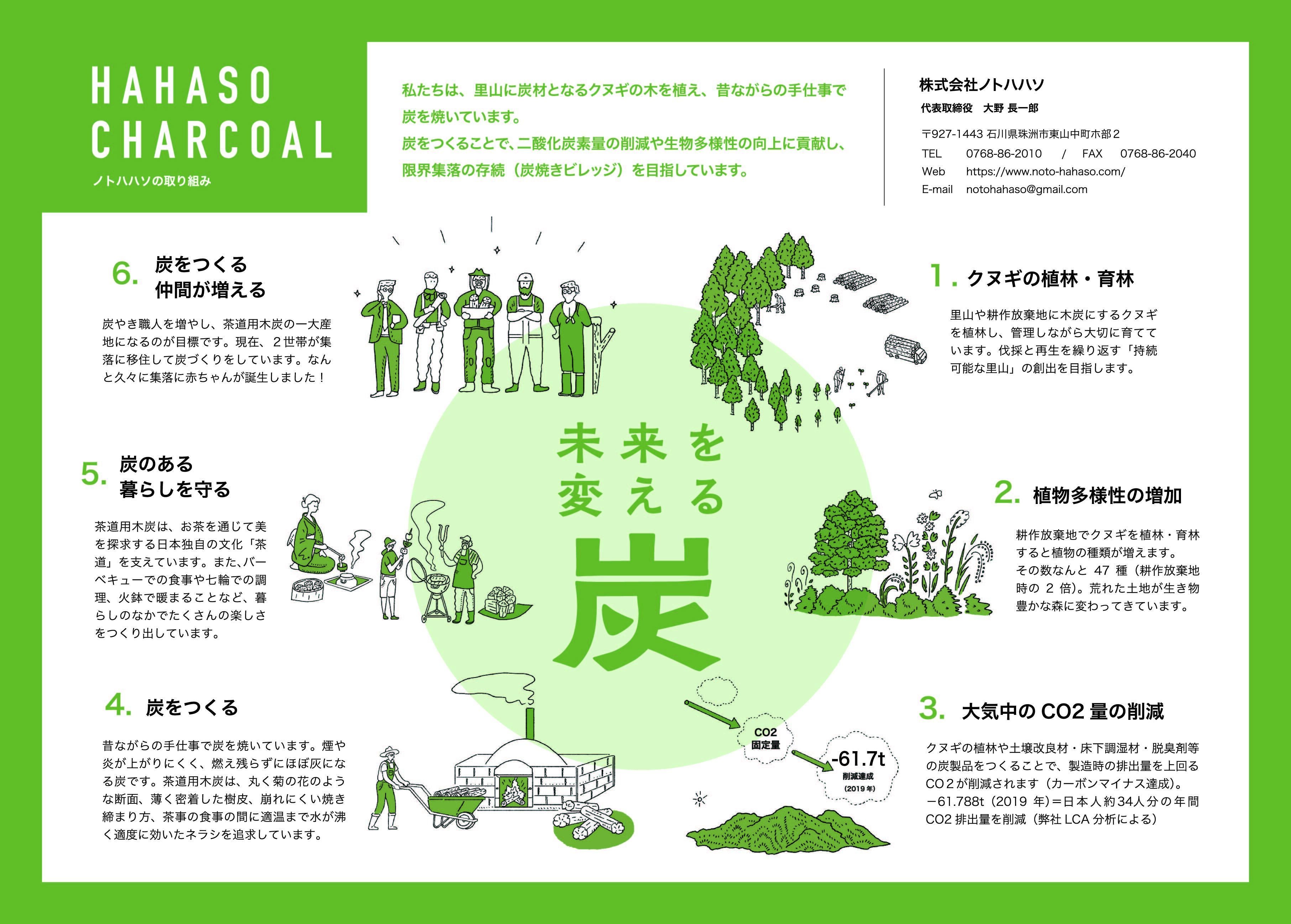 弊社商品のキャッチコピーを制作しました。「未来を変える炭」二酸化炭素量を削減し、生物多様性の向上させて、地球環境の未来を変える炭。炭やきを生業として限界集落を存続させ、弊社のある東山中集落の未来を変える炭。私たちの炭やきが、よりよい未来をつくりだすことを目指したキャッチコピーとなっています。キャッチコピーの制作は、能登町の株式会社SCARAMANGAさんが手掛けてくださいました。丁寧に私たちの取り組みを聞き出し、いまの私たちにとってどんなデザインツールが必要なのかを真剣に考えてくださいました。ありがとうございました。株式会社SCARAMANGAhttps://scaramanga.jp/お客さまと共に、このキャッチコピーを育てていきたいと思っております。引き続き、どうぞよろしくお願いします。