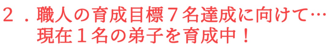 現在育成中の職人をはじめ、今後も職人を増やしていくためには、これまでよりも生産力を上げて売上を確保し、安定した雇用体制を構築する必要があります。