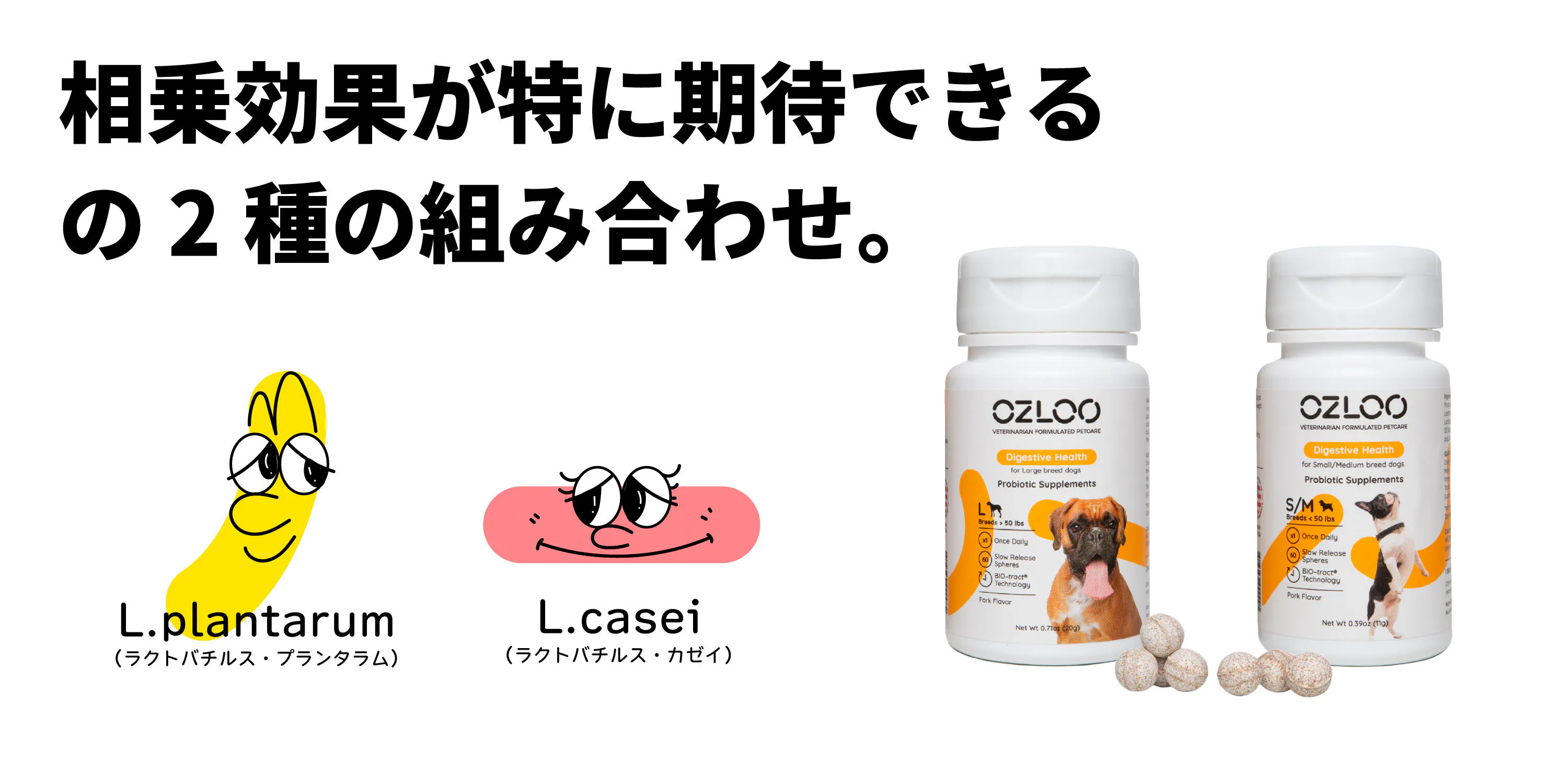 販売されている整腸剤の中で、一番気になるのは、効果が実感できるかです。その鍵をにぎるのは、整腸剤に含まれる“腸内細菌”です。OZLOOは、数多くある腸内細菌の中でも犬への健康効果が論文などで報告されているL.plantarum(ラクトバチルス・プランタラム)をメインの菌として採用。