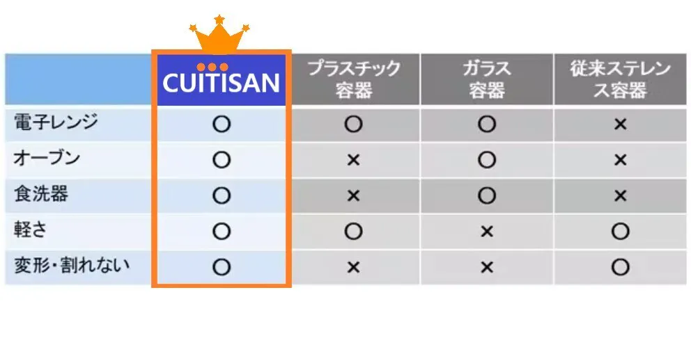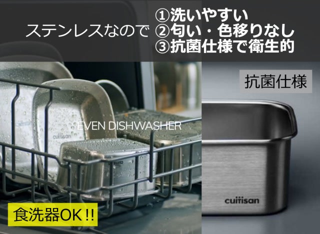 Cuitisanは、革命的なステンレス技術でその問題点をクリアし、さらにスタイリッシュなデザインで、単なる保存容器を洗練された調理容器に進化させました!!