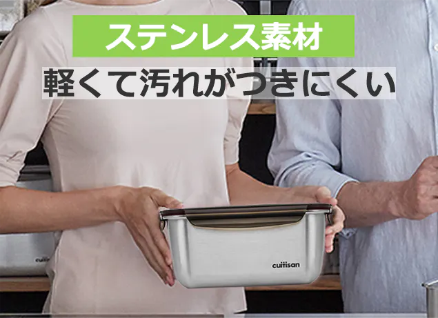 ステンレスの容器は、軽くて衛生的でとても丈夫です。