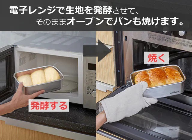 ②Cuitisanひとつで、電子レンジで生地を発酵させて、オーブンでパンを焼くことができます。